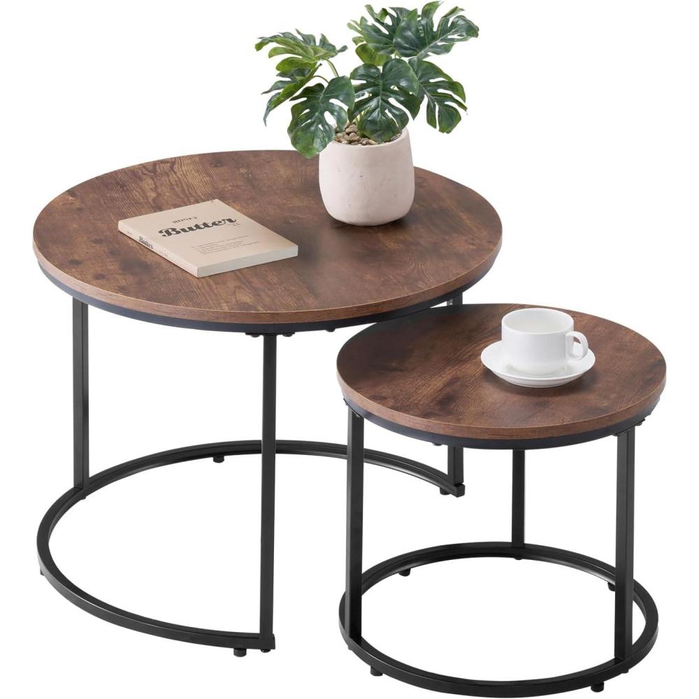 Flexible Combination: This nesting coffee table set includes a large table (φ23.6 x 18.1 in) and a small table (φ15.8 x 14.2 in). The flexible design allows you to mix and match according to personal preference and space requirements. When nested, it saves space in your home. When used independently, it can serve as a coffee table, side table, etc.
