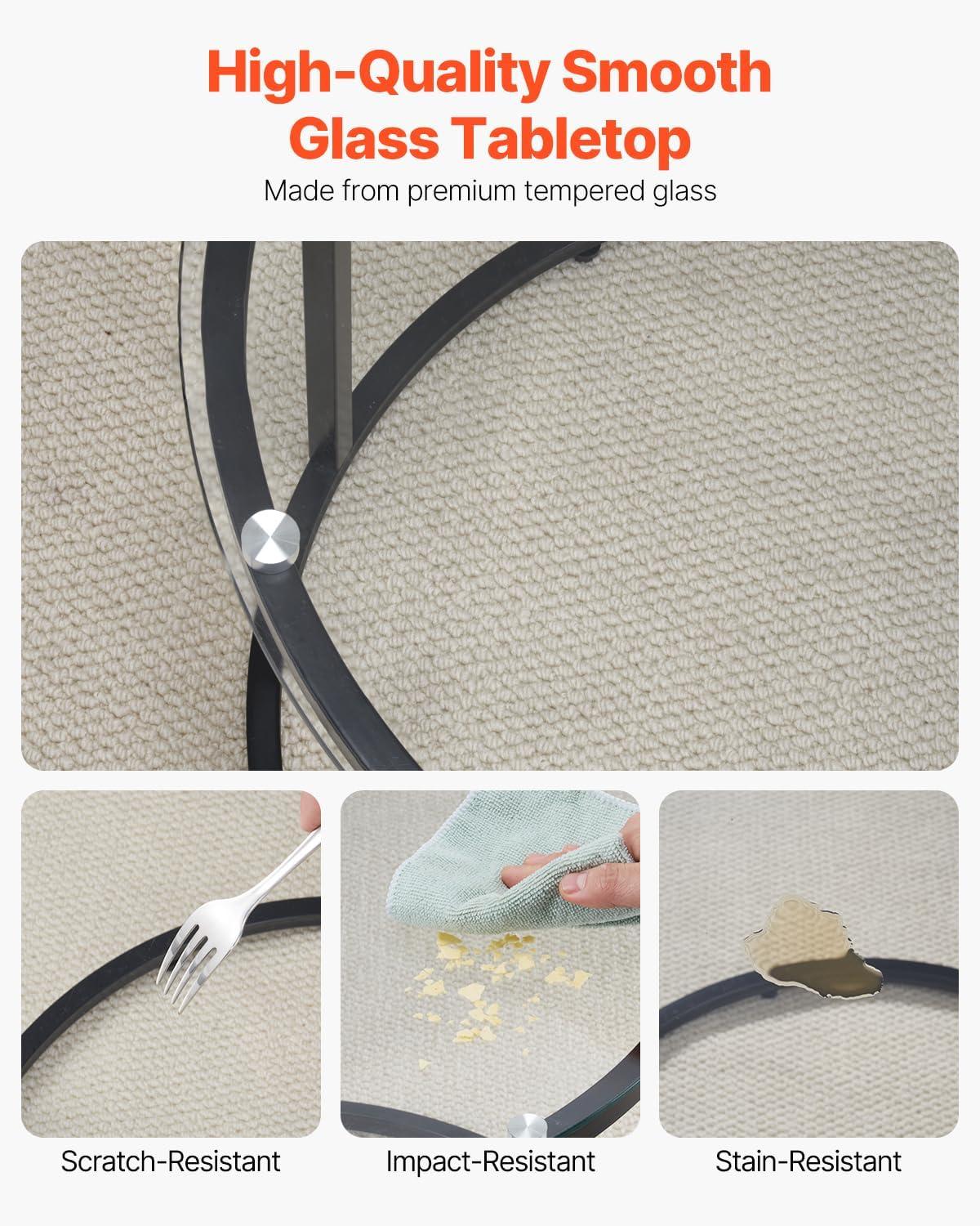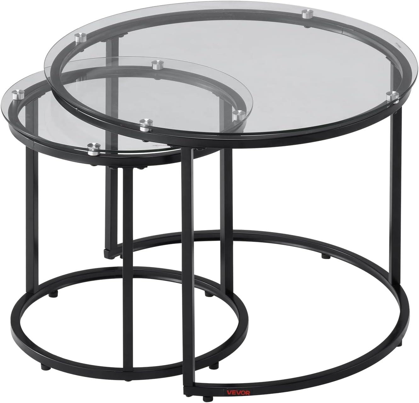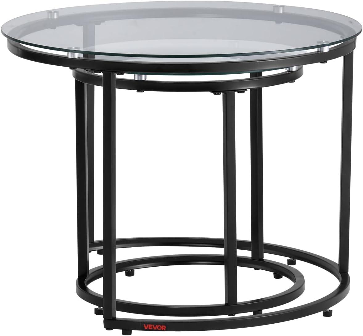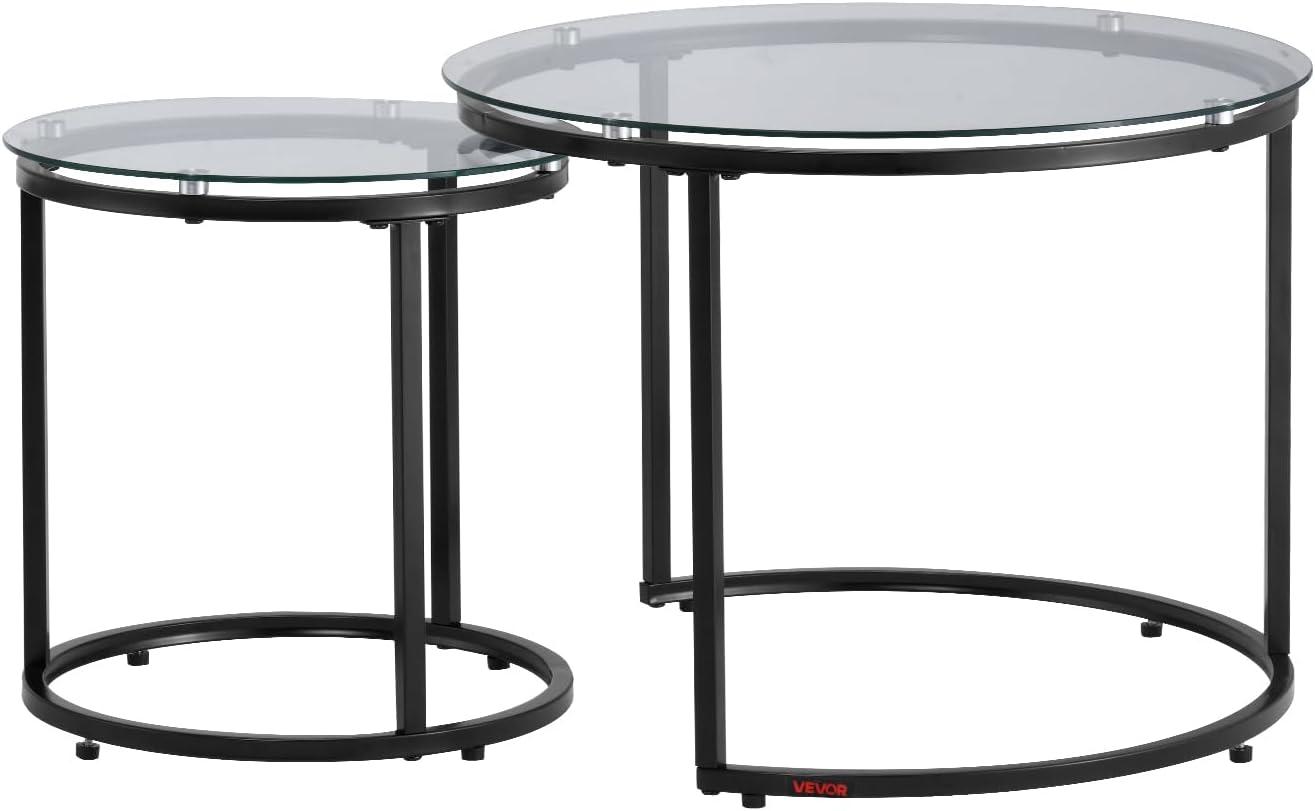 VEVOR Nesting Tables, Coffee Table Set of 2, 23.6 inch Round Coffee Table, Small Coffee Tables Night Stand with Metal Frame, for Living Room, Bedroom, Office (White & Gold)(Glass)