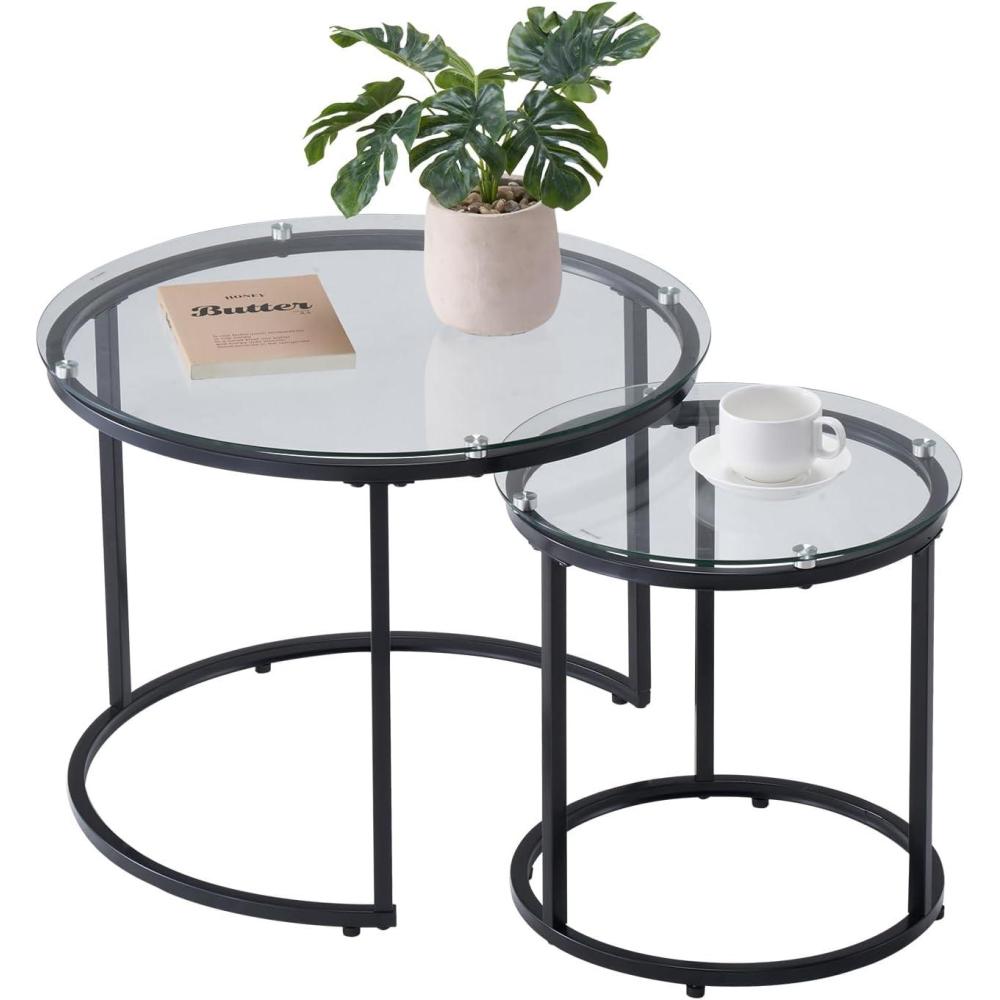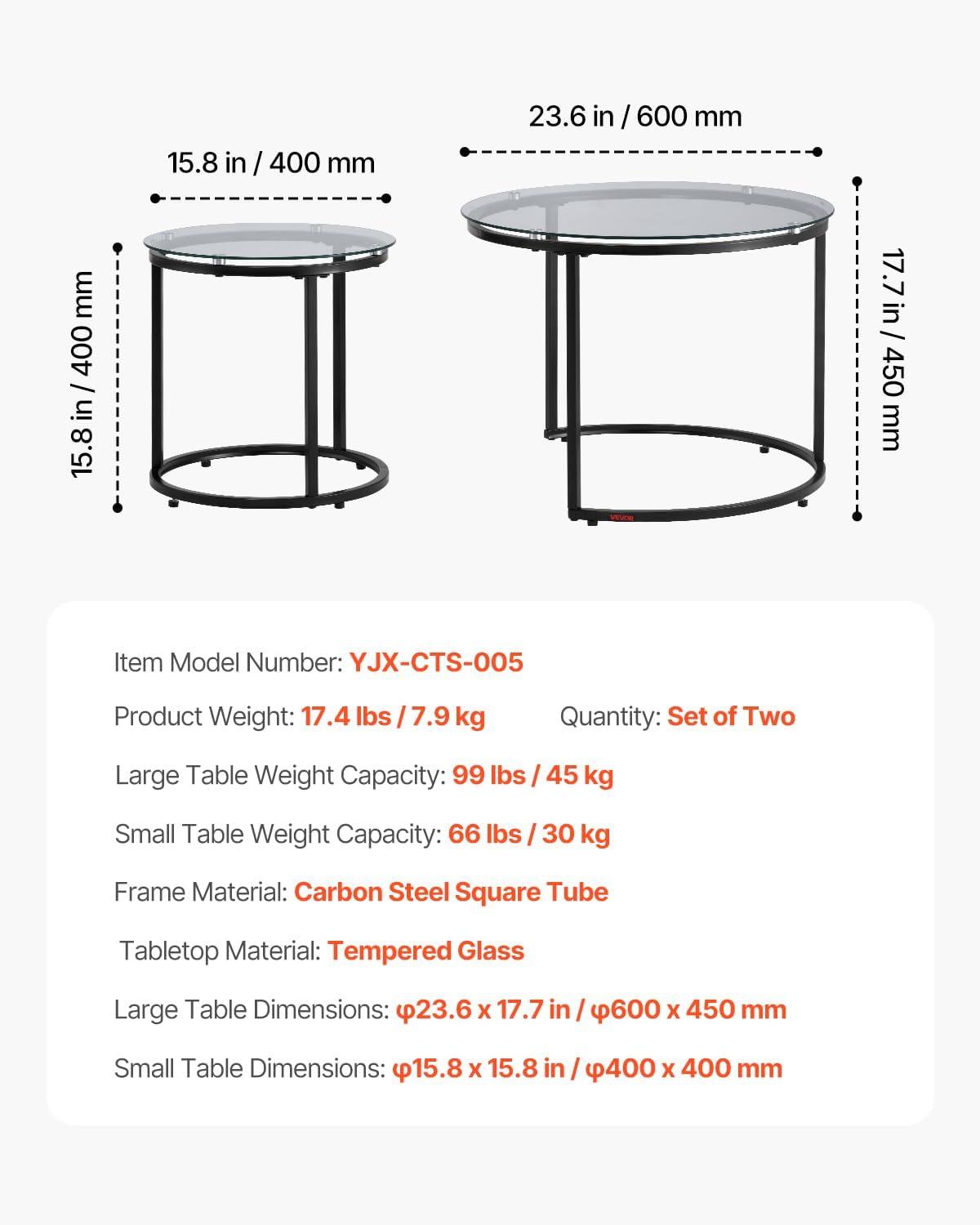 Flexible Combination: This nesting coffee table set includes a large table (φ23.6 x 18.1 in) and a small table (φ15.8 x 14.2 in). The flexible design allows you to mix and match according to personal preference and space requirements. When nested, it saves space in your home. When used independently, it can serve as a coffee table, side table, etc.