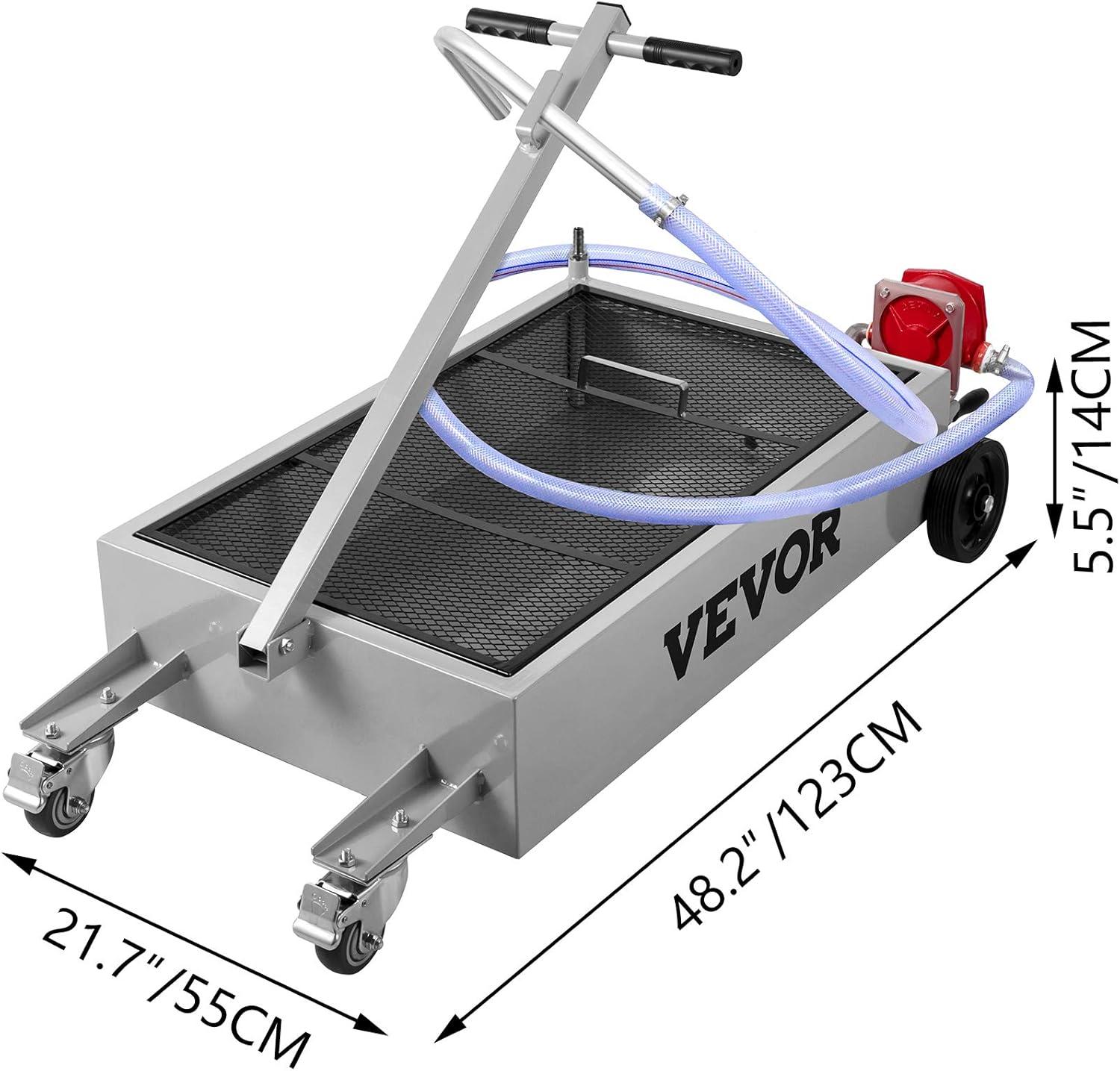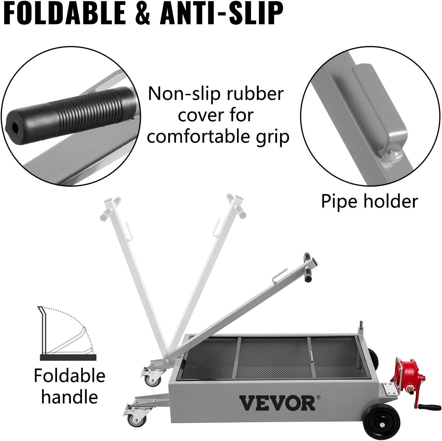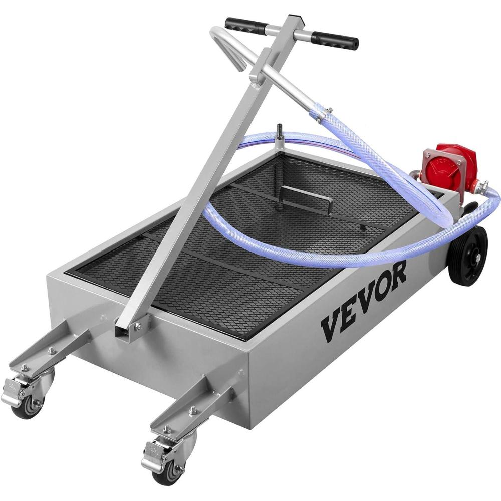Oil Drain with Pump: Our oil drain pan features a manual rotary pump installed below the front of the reservoir, which can quickly drain oil, coolant, and other fluids. We kindly provide one 7.2' evacuation hose for convenient draining.