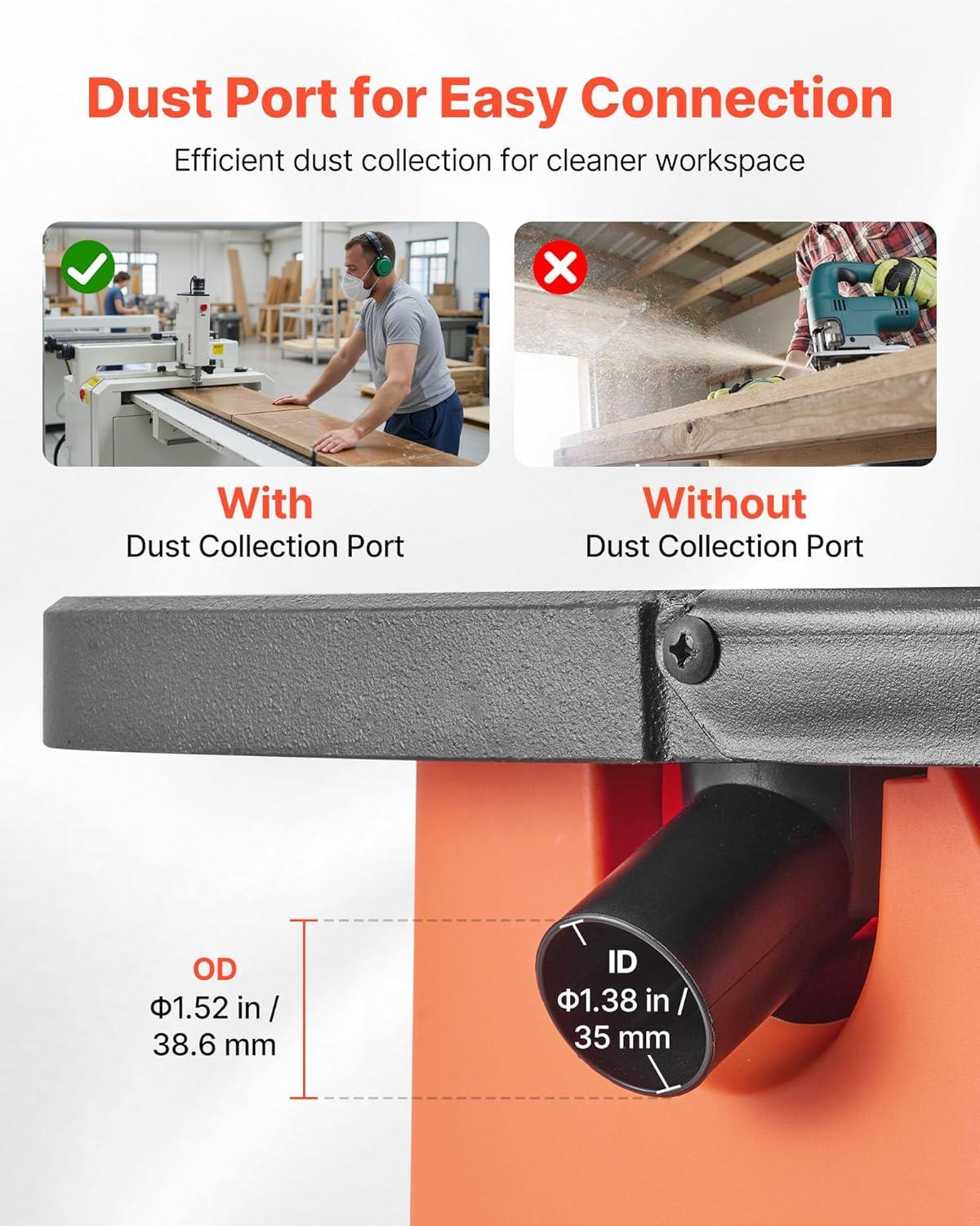 Dust-Free Operation: Equipped with a 2.26 inch (57.5mm) ID and a 2.46 inch (62.5mm) OD dust port, our spindle sander connects easily to vacuum hoses for efficient dust collection, reducing cleanup and keeping your workspace cleaner