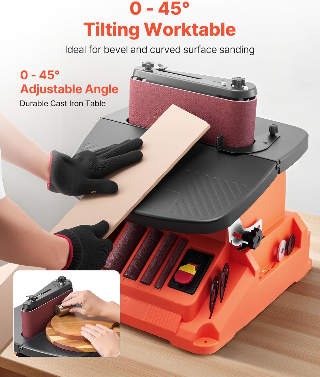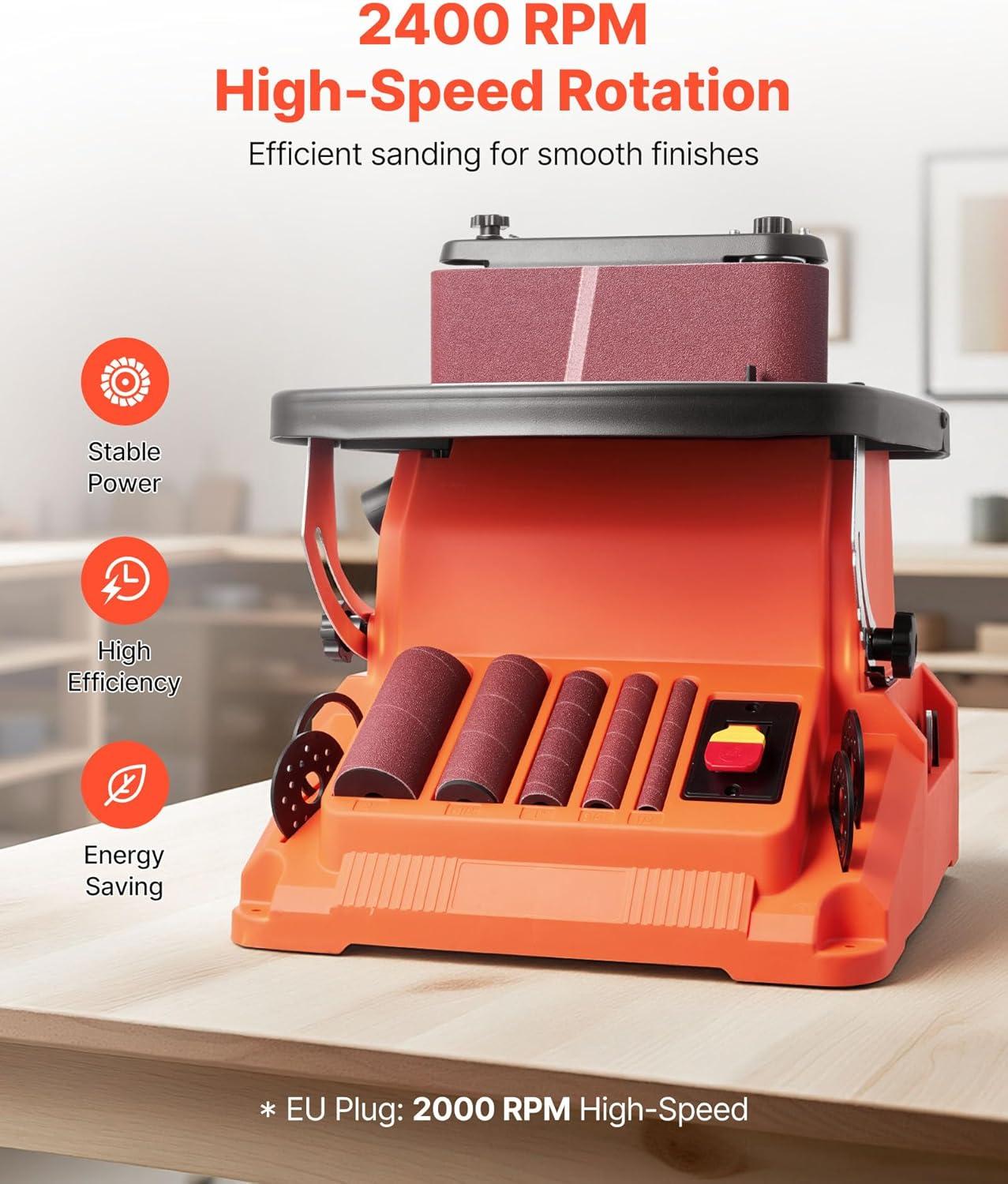 Efficient Sanding: With 2400 RPM high-speed rotation, this oscillating spindle sander delivers smooth, efficient sanding on flat, curved, and contoured surfaces. Perfect for furniture finishing, crafts sanding, and DIY woodworking projects