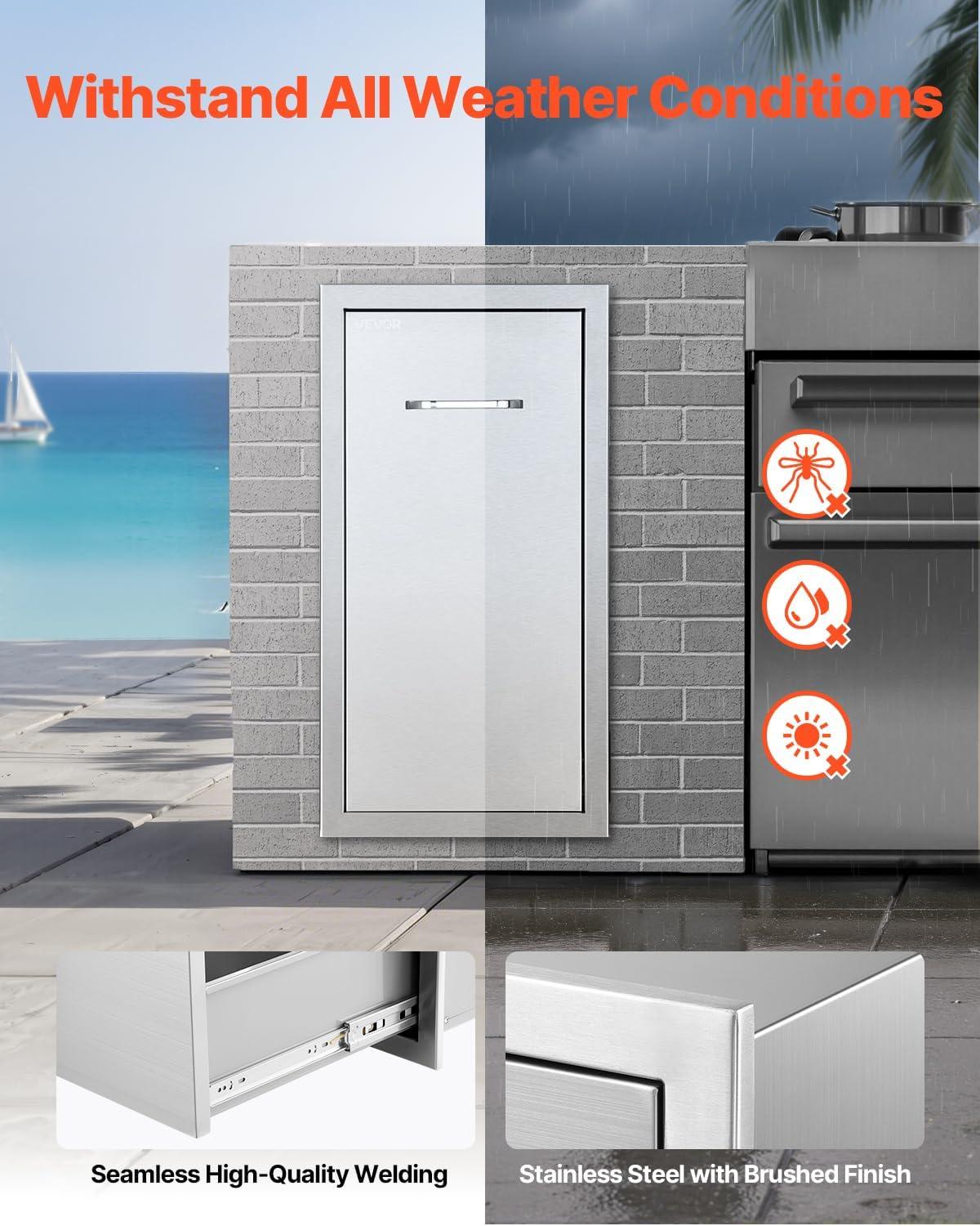 Wide Range of Applications: Designed to withstand all weather conditions, including wind and rain, this outdoor storage drawer is ideal for outdoor and indoor kitchens, BBQ islands, bars, and grills. Great for storing trash bins, propane tanks, and more