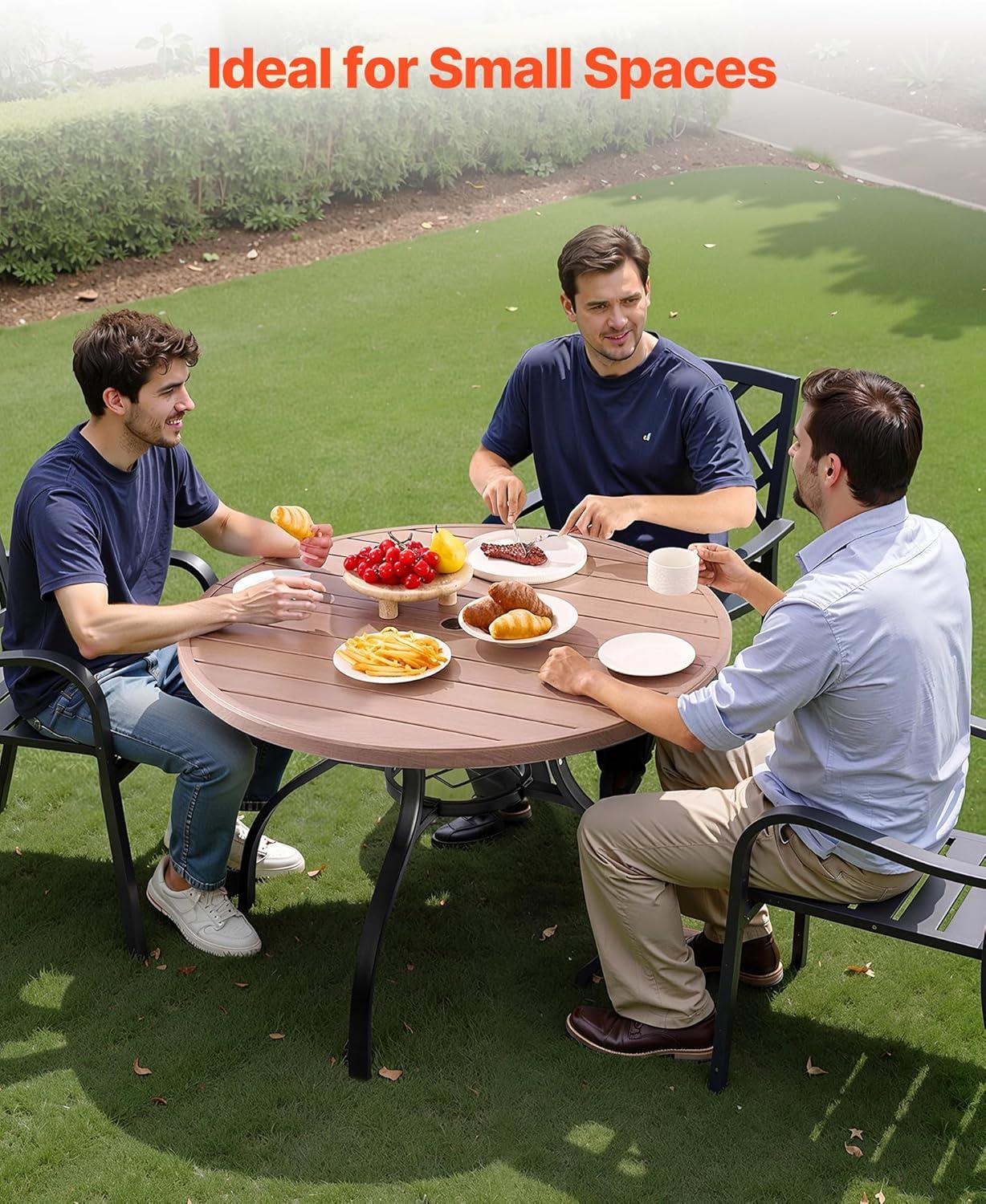 VEVOR Outdoor Patio Dining Table, 41 inch Round Wood-Like Steel Slat Backyard Bistro Coffee Tables for 4, with 1.5 in Umbrella Hole, Outside All-Weather Large Furniture for Lawn Garden Porch(47 inch)