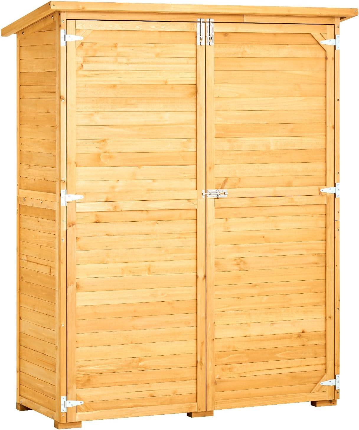 Outdoor Storage Shed with Sturdy Structure: This newly upgraded outdoor storage shed is made from high-quality natural fir wood and treated for excellent waterproofing and corrosion resistance. The thoughtful anti-tip design effectively prevents the cabinet from tipping over, ensuring it can withstand various climate conditions for long-term use.
