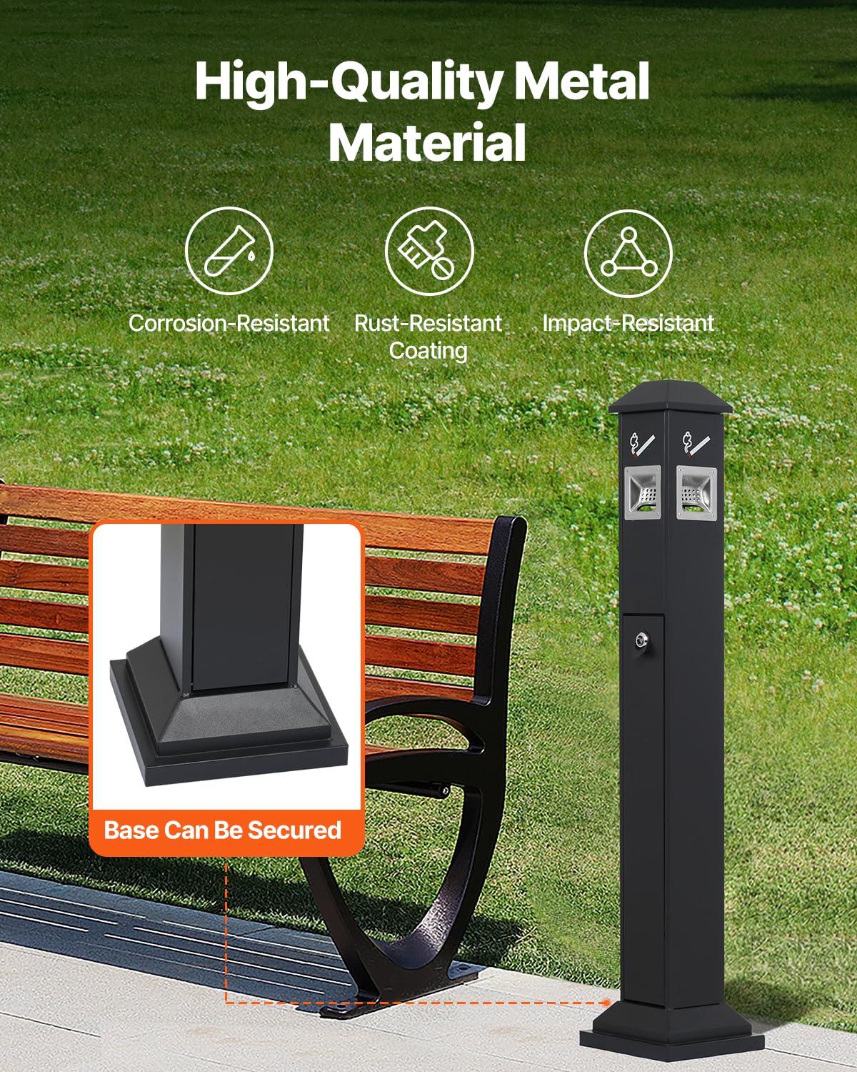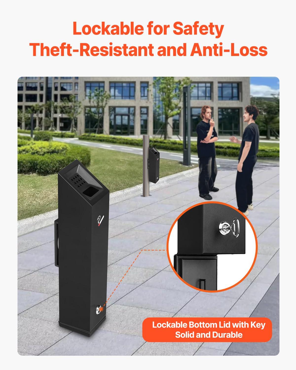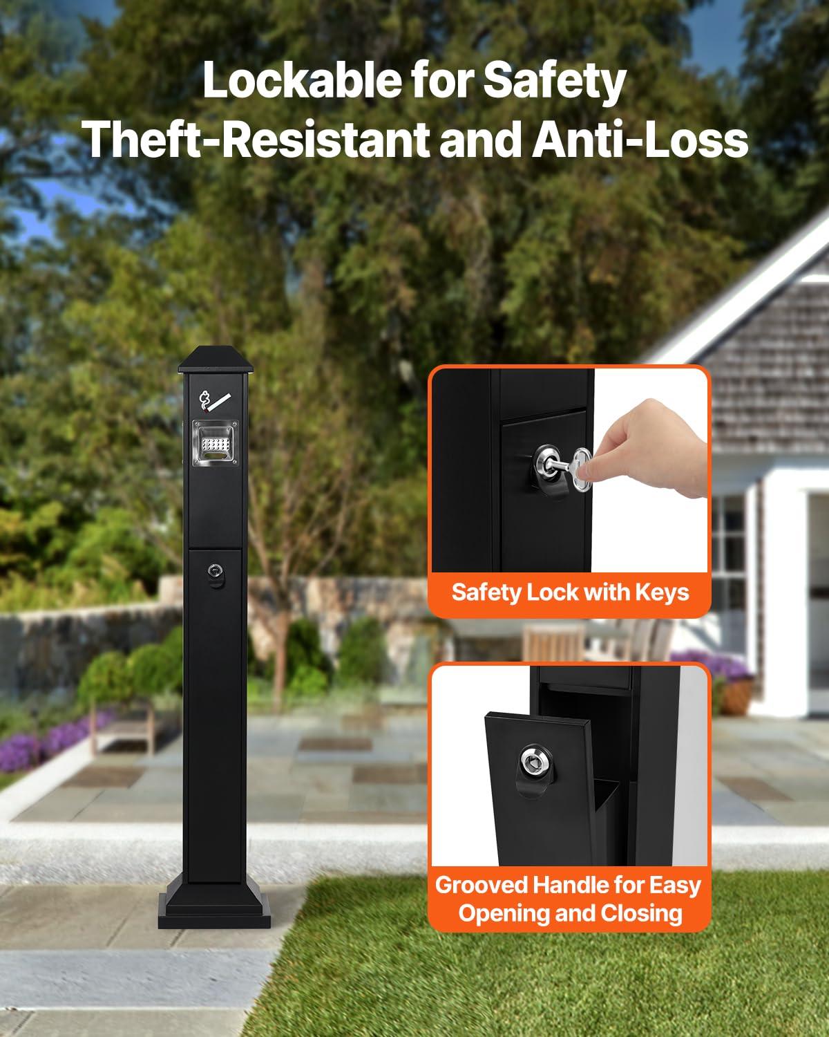 Weatherproof & Secure: The rainproof top keeps everything dry and fresh, while the built-in security lock and recessed handle make maintenance simple and theft prevention a breeze. This smoking cigarette butt receptacle is built to keep your environment secure and tidy, no matter the weather.