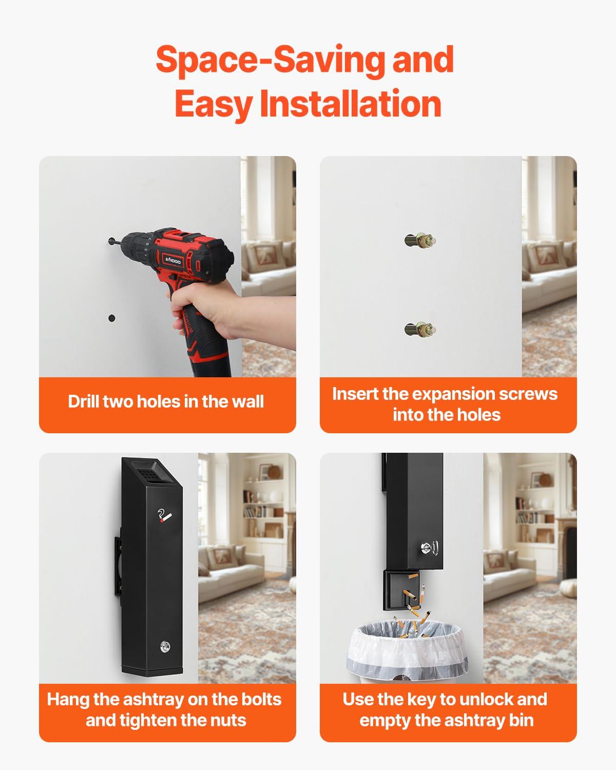 Premium Durability: Crafted from heavy-duty iron with a powder-coated finish, this cigarette butt receptacle offers a subtle metallic texture, is rust and corrosion-resistant, and built to last. The base can be fixed with screws to prevent tipping, enhancing security and stability.