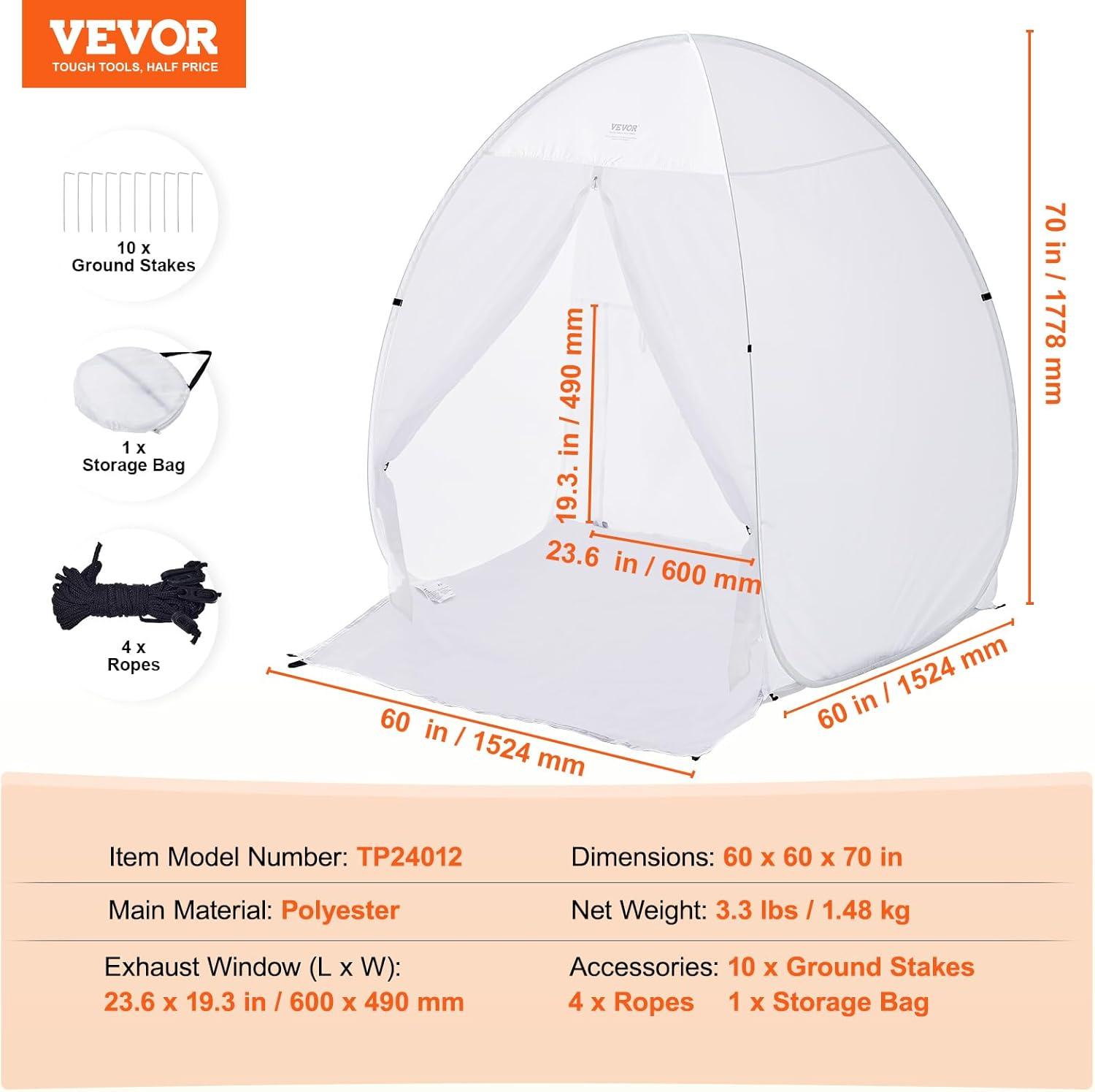 Spacious Interior: With dimensions of 60 x 60 x 70 in, this pop-up spray paint tent provides 17% more space than regular models, providing a roomy work environment. It can accommodate larger furniture and parts.