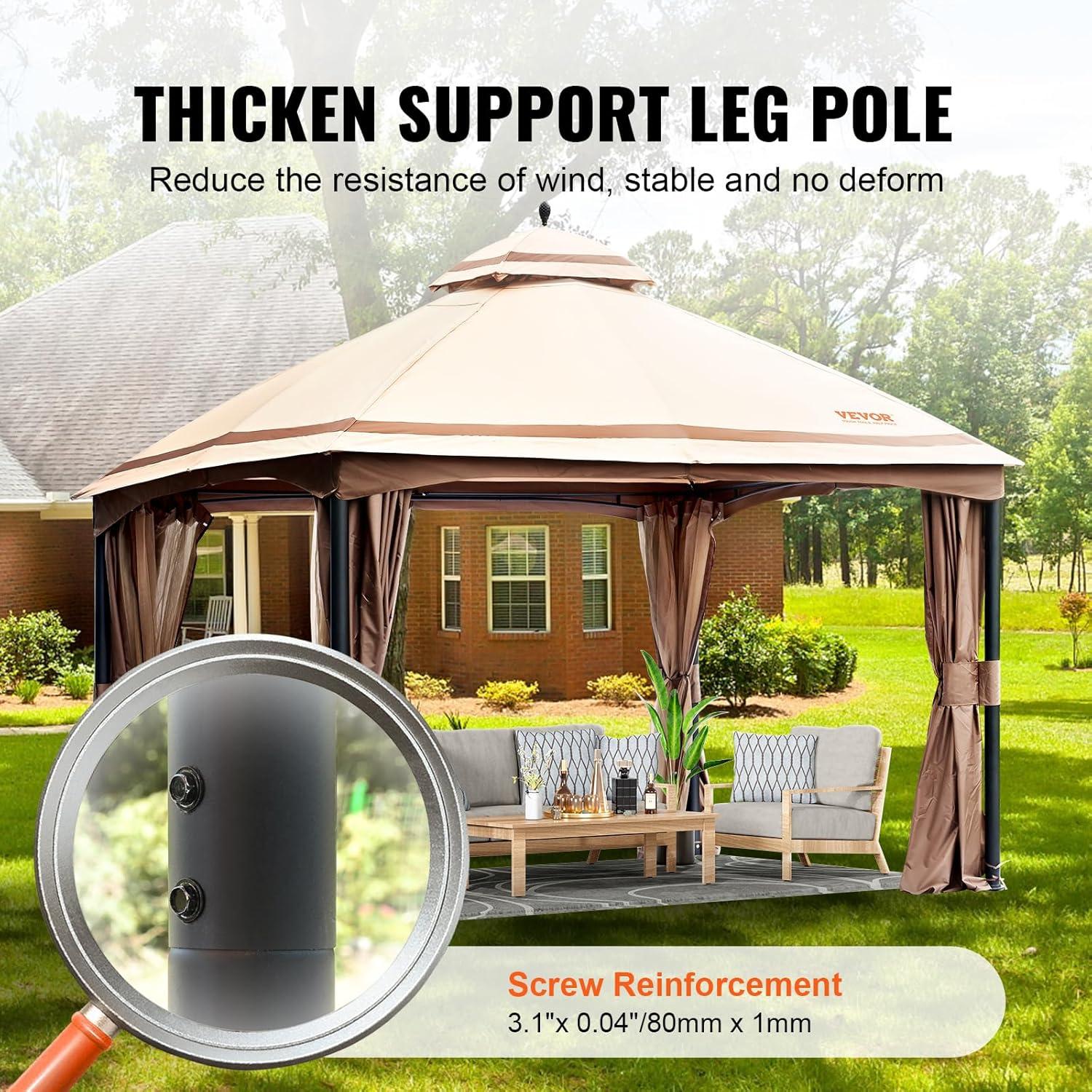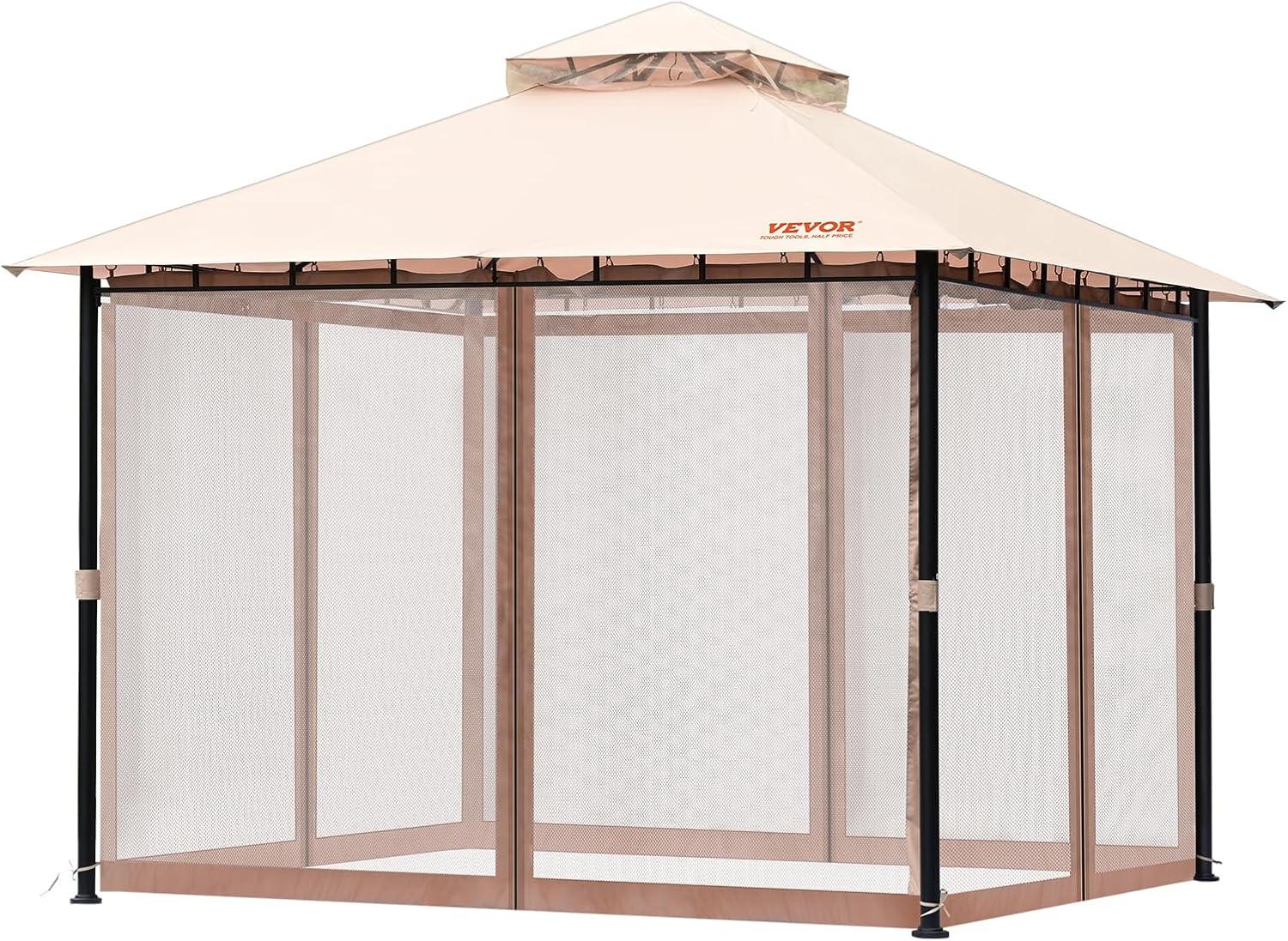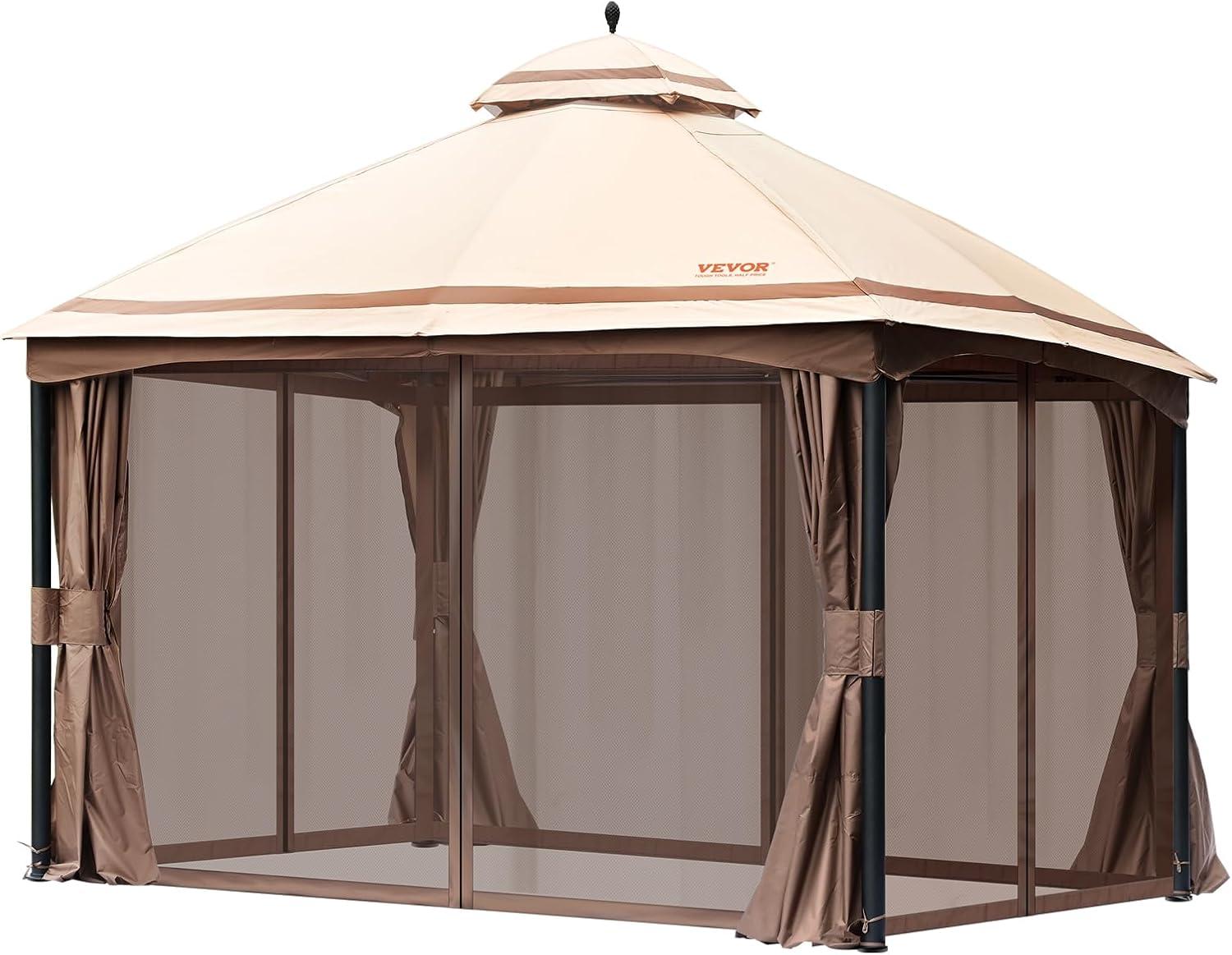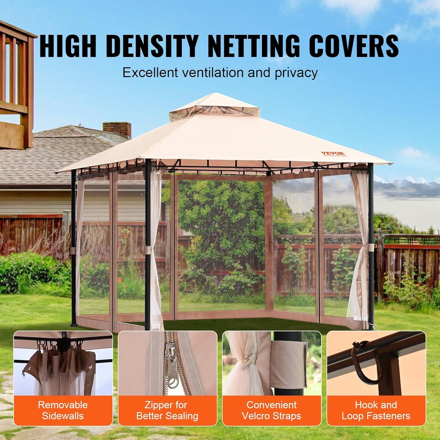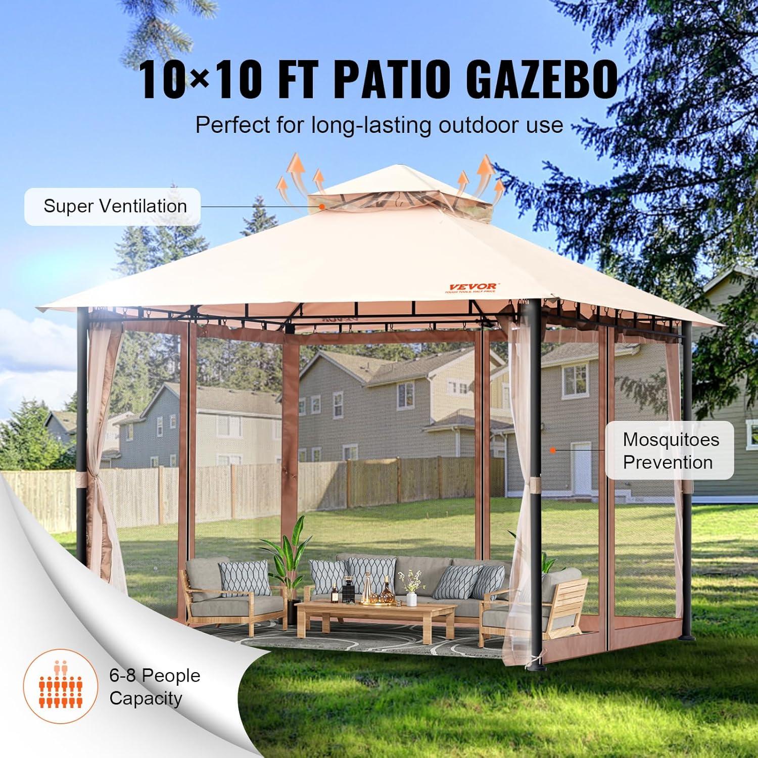 VEVOR Patio Gazebo for 6-8 Person, 10 x 10 FT Backyard Gazebo, with Mosquito Netting, Metal Frame, and PU Coated 180G Polyester, Outdoor Canopy Shelter for Patio, Backyard, Lawn, Garden, Deck(Brown)