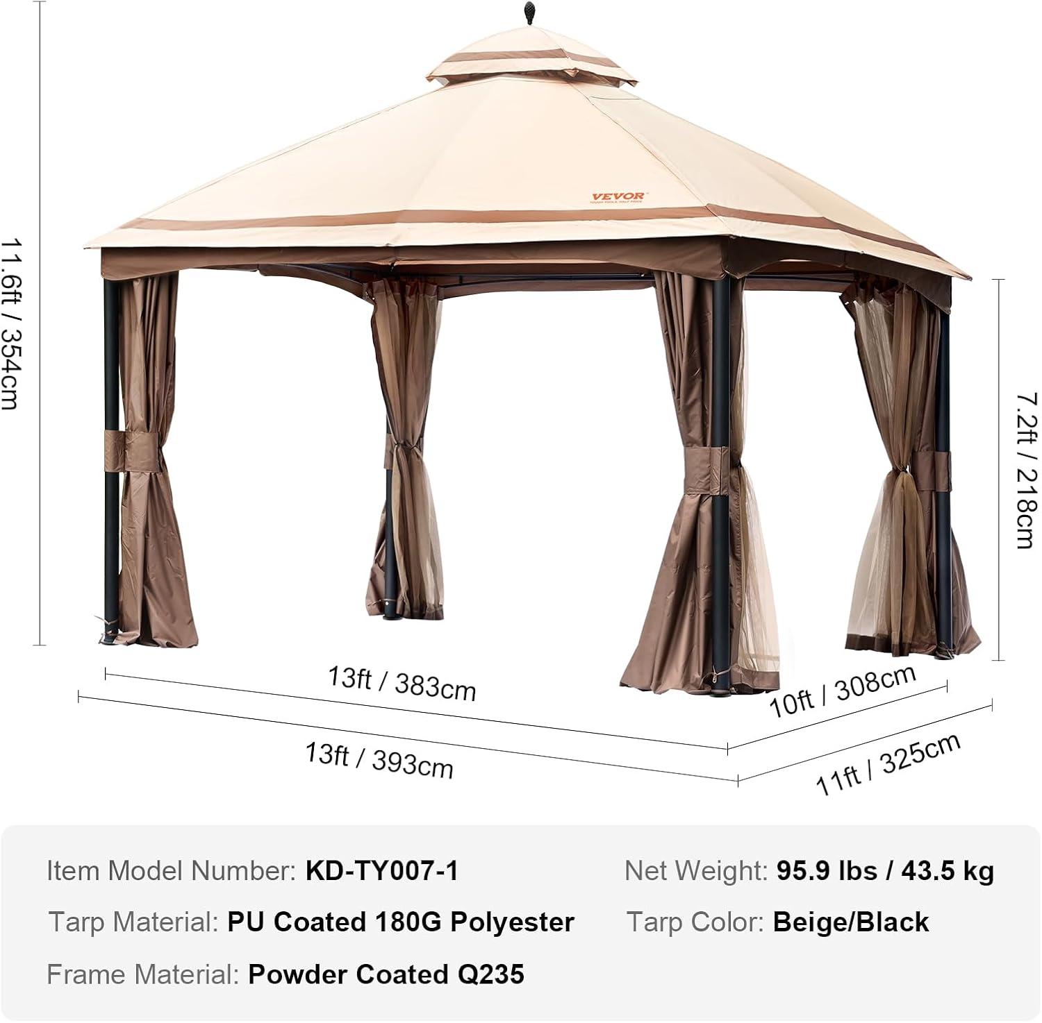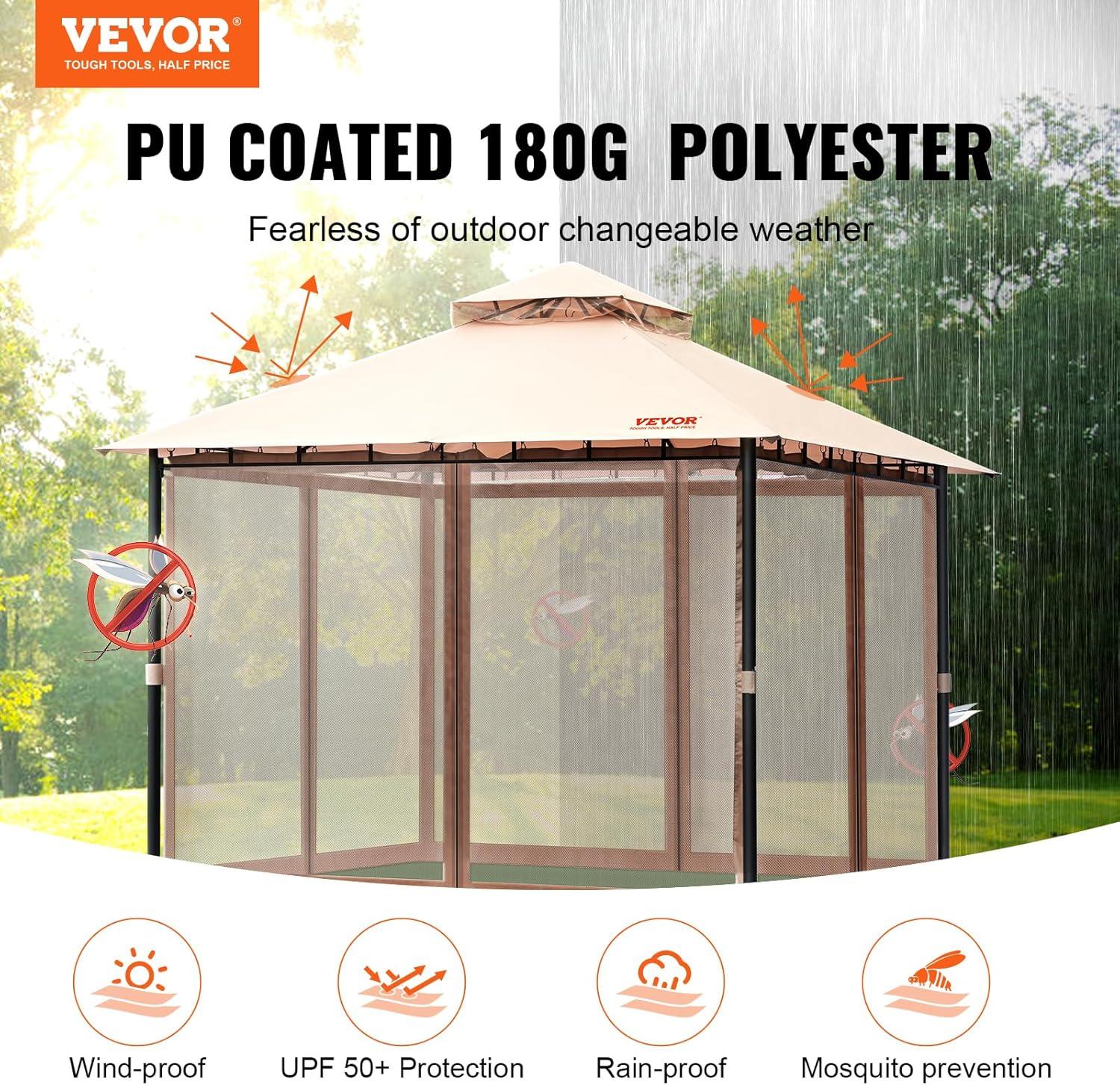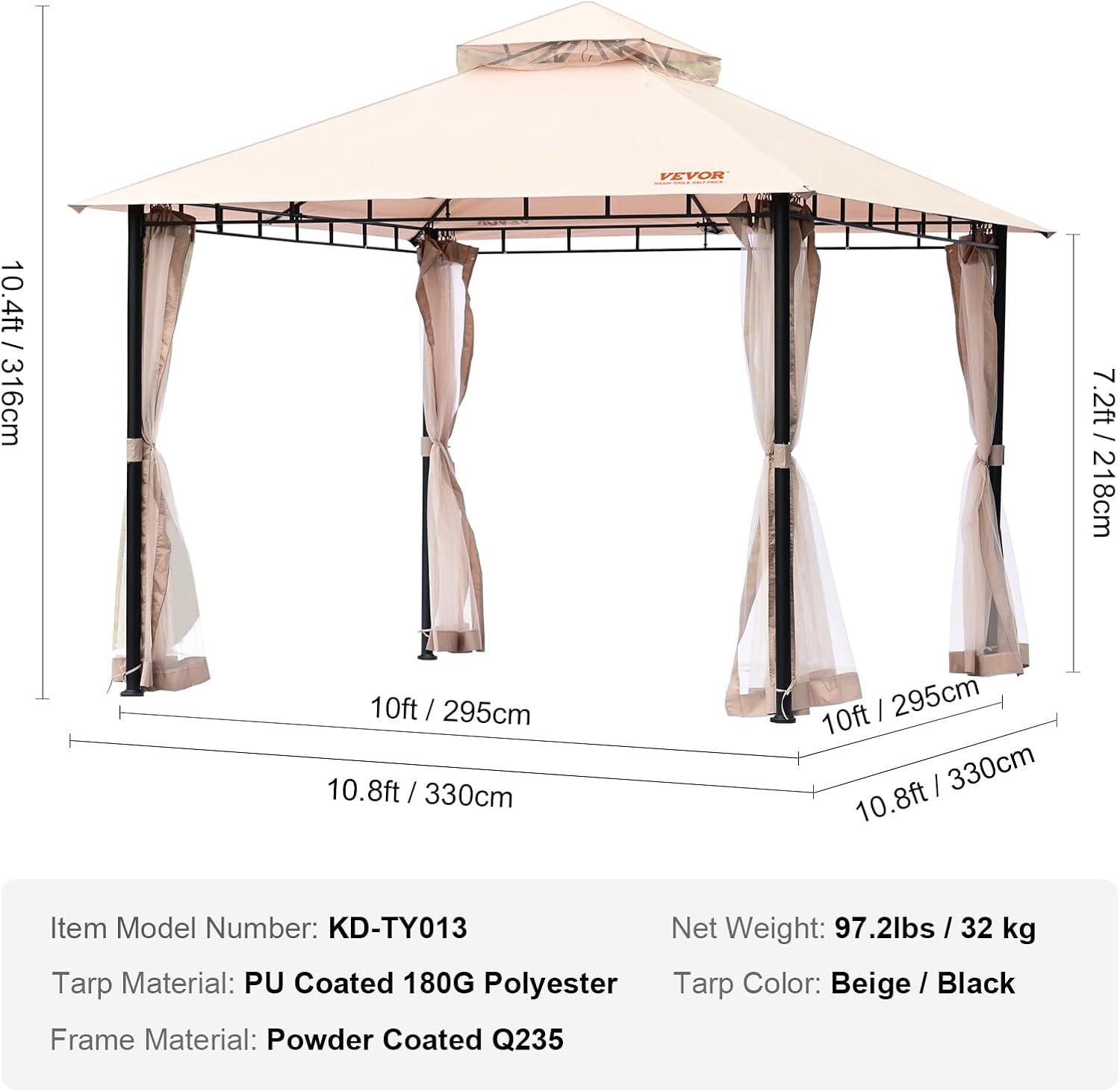 VEVOR Patio Gazebo for 6-8 Person, 10 x 10 FT Backyard Gazebo, with Mosquito Netting, Metal Frame, and PU Coated 180G Polyester, Outdoor Canopy Shelter for Patio, Backyard, Lawn, Garden, Deck(Beige/Black)