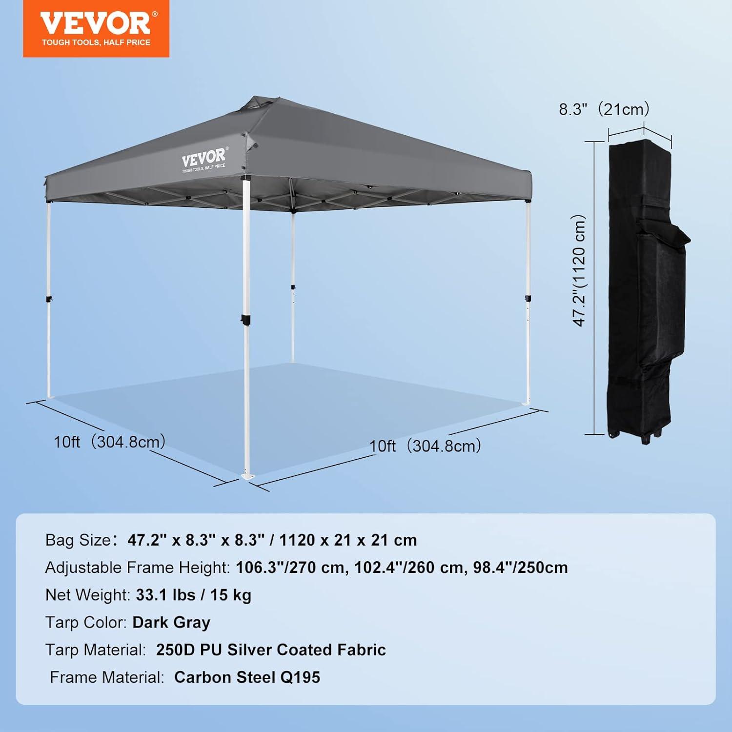 imageVEVOR Patio Gazebo for 68 Person 10 x 10 FT Backyard Gazebo with Mosquito Netting Metal Frame and PU Coated 180G Polyester Outdoor Canopy Shelter for Patio Backyard Lawn Garden DeckDark Gray