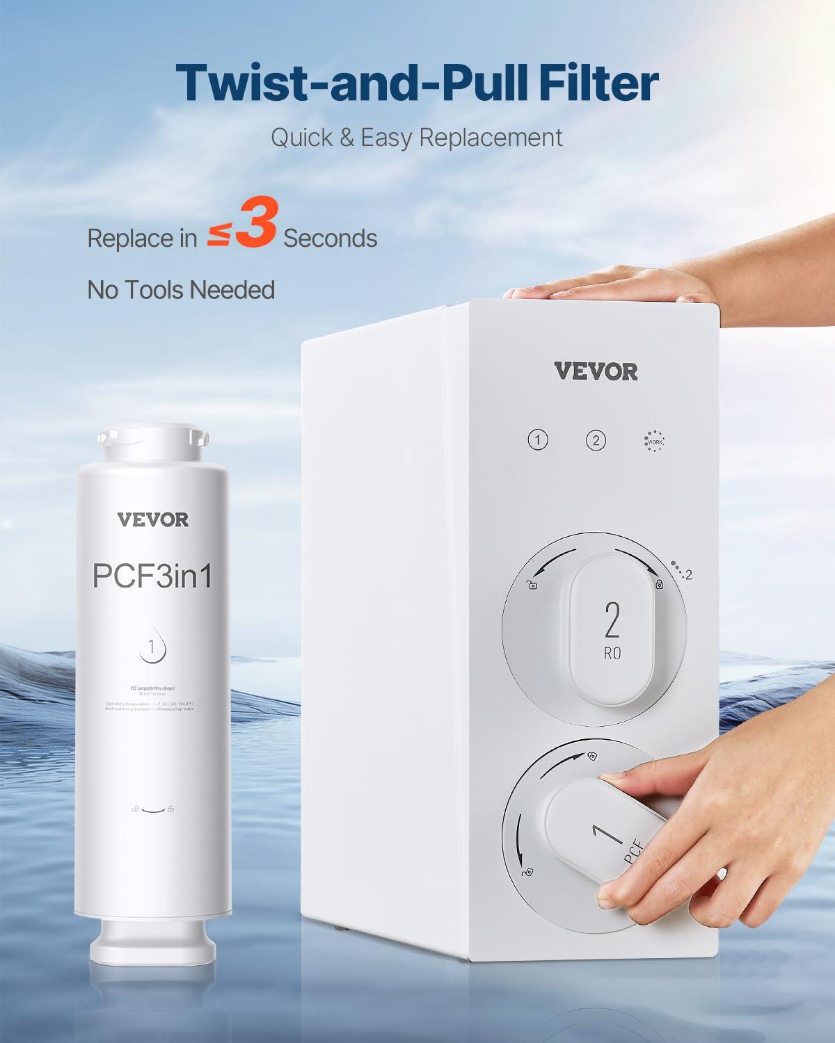 Easy Filter Replacement: Twist and pull for quick filter changes: no tools, no hassle, and no need to move the under sink water filter system. A leak-proof design ensures a smooth installation process.