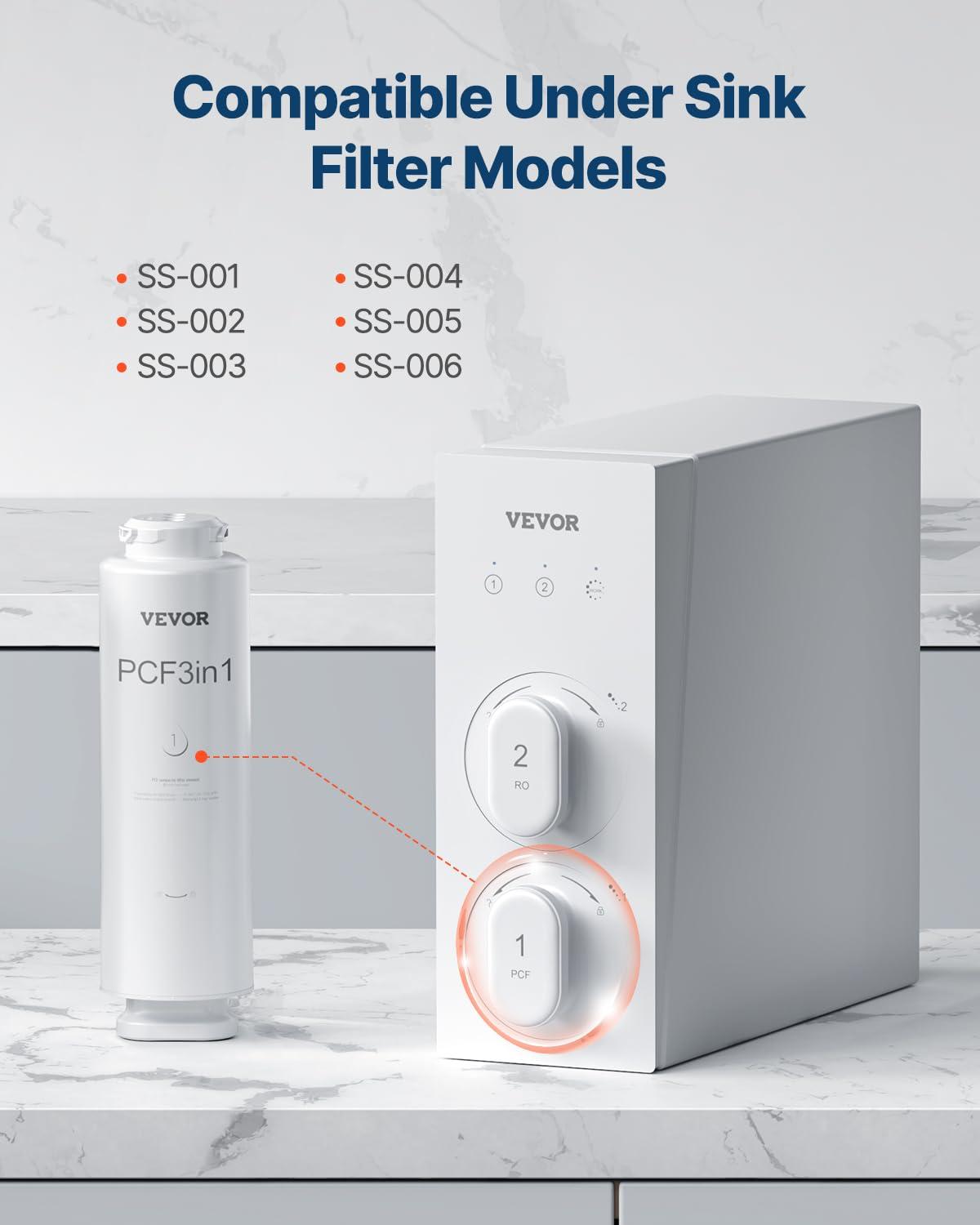 Compatible Models: Suitable for SS-001/003/005 under counter reverse osmosis filter machine, this filter provides high-efficiency filtration, low water waste, and real-time filter replacement reminders, giving you pure and secure water every time.