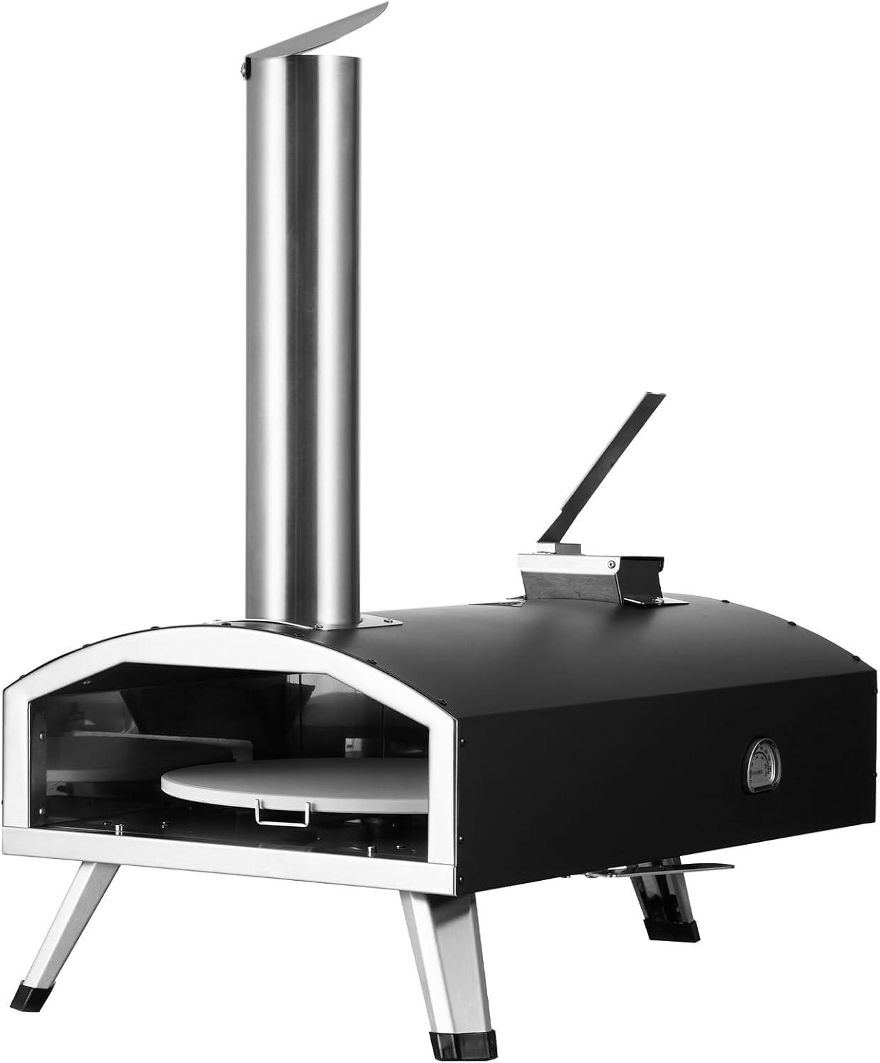 VEVOR Pellet Pizza Oven, 12-inch Outdoor Pizza Oven with Rotate Pizza Stone, Portable Wood Fired Pizza Maker with Built-in Thermometer, Ideal for Outside Camping & Backyard, Patio, Black