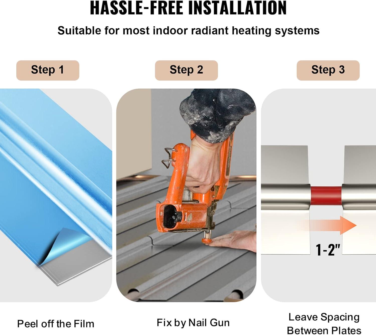 Effortless to Install: We recommend you leave 1-2″ spacing between the radiant heat manifold, ensuring a firm and secure installation. It is easy to cut into any shape due to its flexibility to meet all your needs. Please make sure that how many plates you need before purchasing. Reference: Number of Plates = Area (Square Footage) x 1.30 / length of plates.