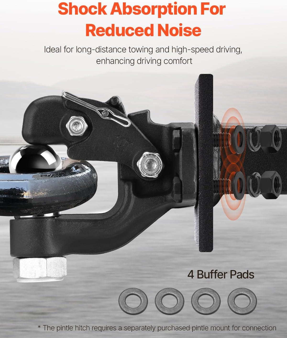 Wide Compatibility: With a standardized size design, our pintle hook trailer hitches easily adapt when used with lunette rings, receiver rings, and ball couplers, making it compatible with various towing equipment, including trucks, tractors, SUVs, and ATVs.