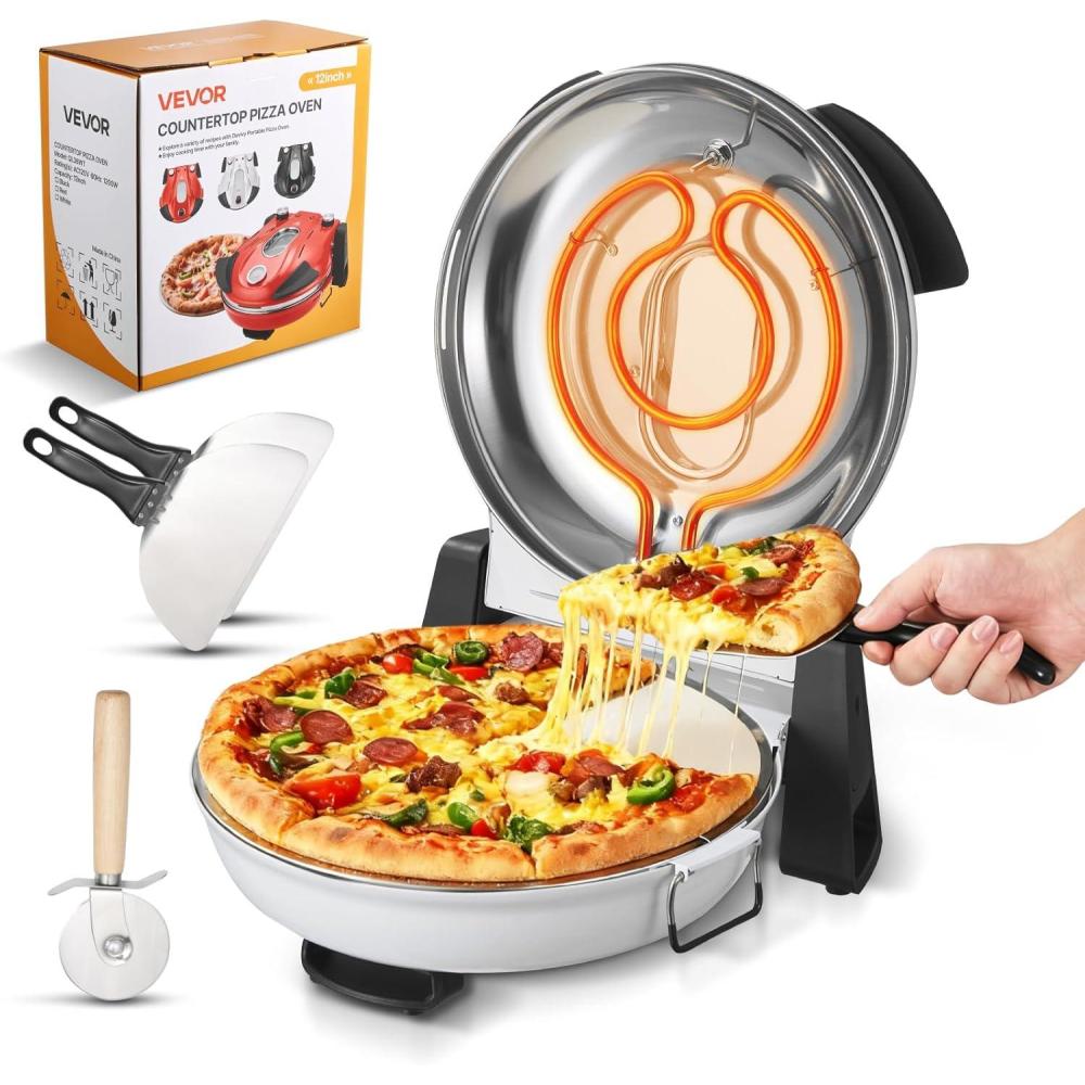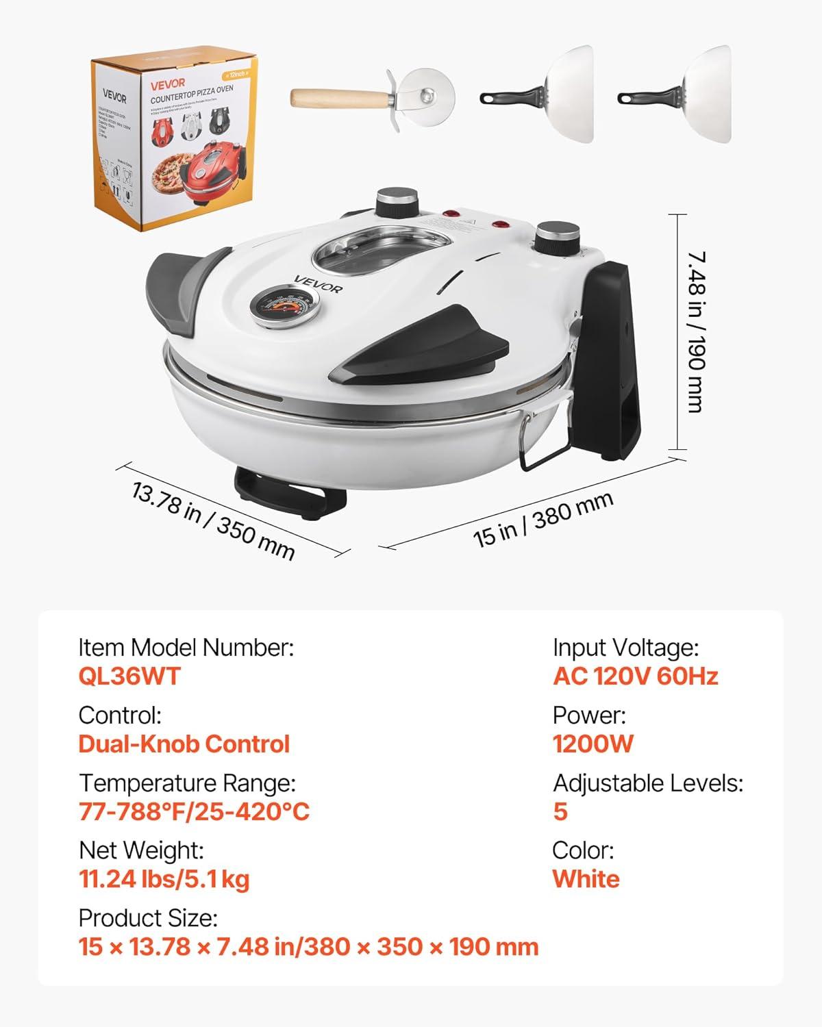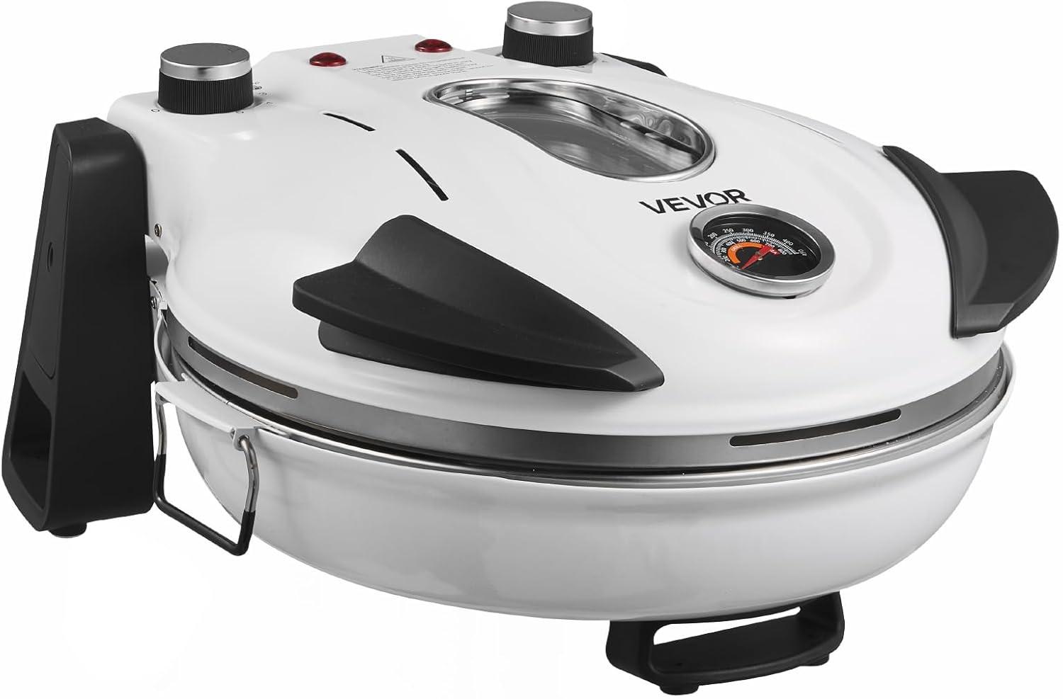VEVOR Pizza Oven, 12 in Electric Pizza Maker, 1200W Electric Pizzas Cooker with Cordierite Stone, 5-Mode Temperature Control, Viewing Window for Precise Cooking, Heats up to 788 ˚F, for Home (Red)(White)