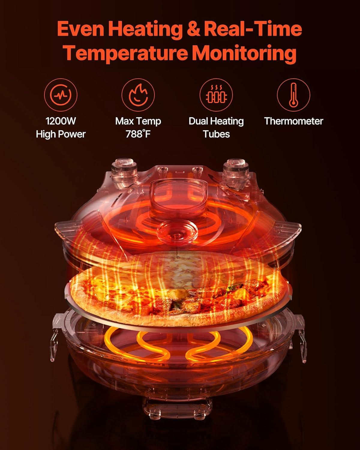 High-Temperature Fast Baking: This pizza oven features 1200W power and double upper and lower heating tubes. It can reach a temperature of 788°F, ensuring you make delicious crispy pizzas in 6 minutes without turning on oven