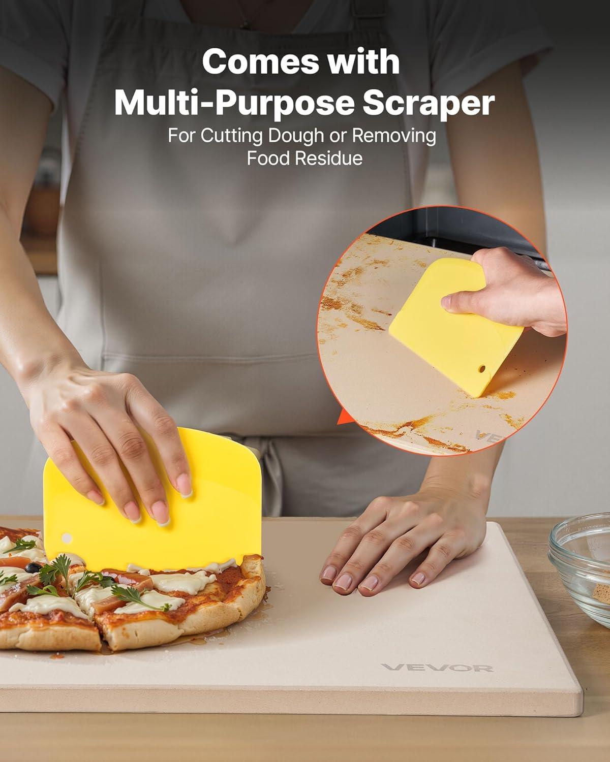 Multifunctional Scraper: This rectangular baking stone includes a PP plastic scraper for cutting dough and baked pizza or scraping off baked bits, adding extra convenience for your cooking needs