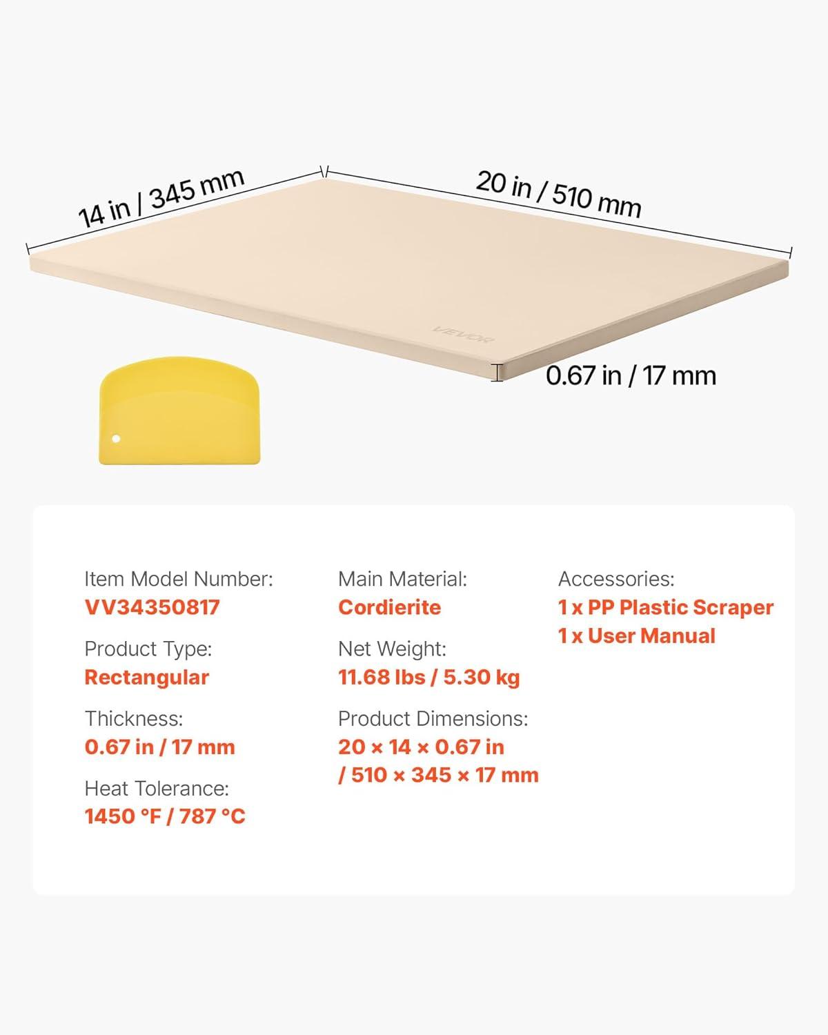 Heat-Resistant Cordierite: Our 0.67 in thickened cordierite rectangular pizza stone can withstand up to 1450°F/787°C without warping or cracking. It stores heat longer, shortens preheating. No bad odor during baking, keeping the food's original flavor