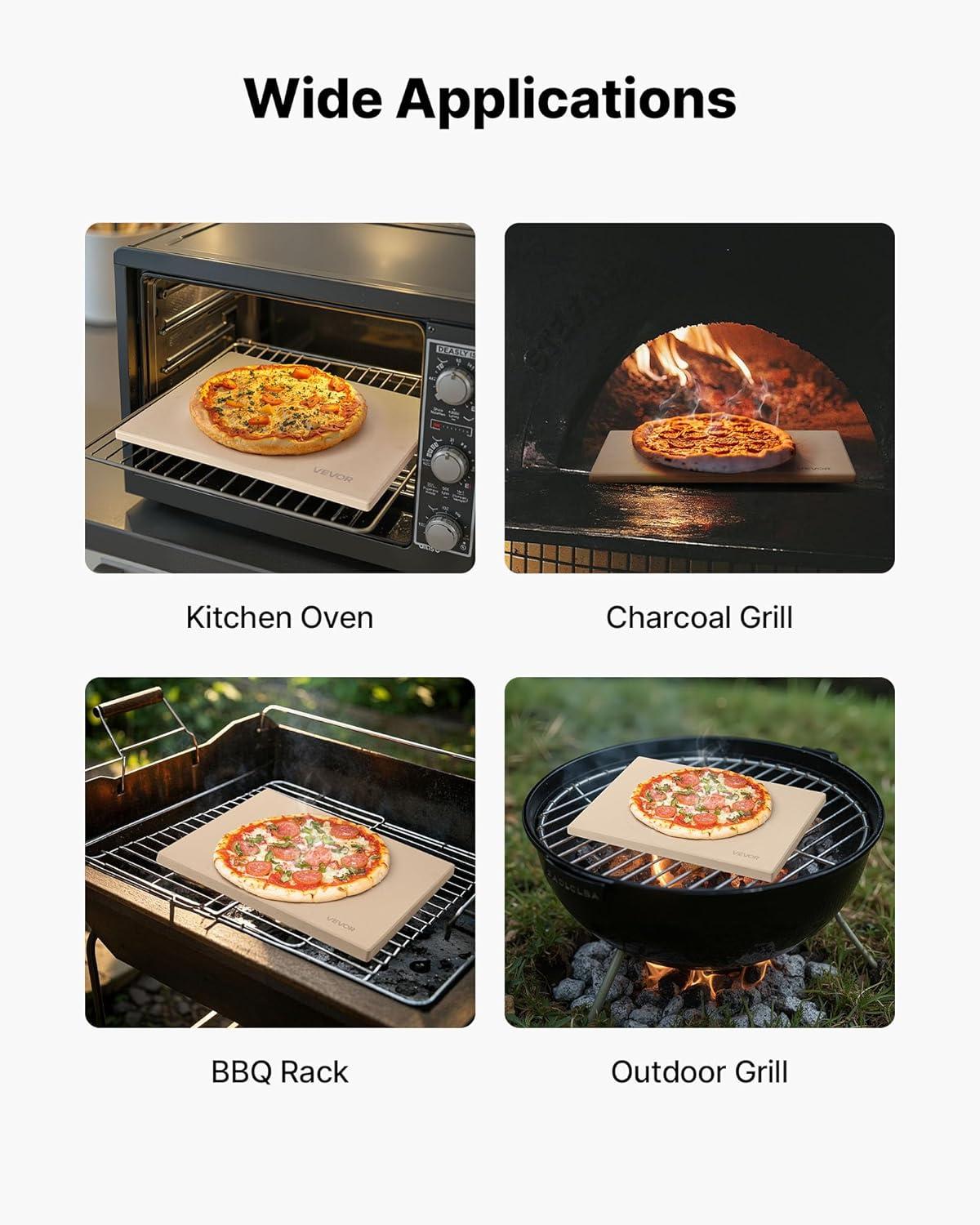 Wide Applications: This large baking stone fits ovens, charcoal grills, barbecues, or stone ovens. It can create crispy pizzas, pastries, and breads, or to reheat food to restore its crispiness, ideal for home kitchens, outdoor grills, and parties. Note: Measure your grill and the inside of your oven to choose the proper size, ensuring at least 0.8-2 in (2-5 cm) of clearance on all sides