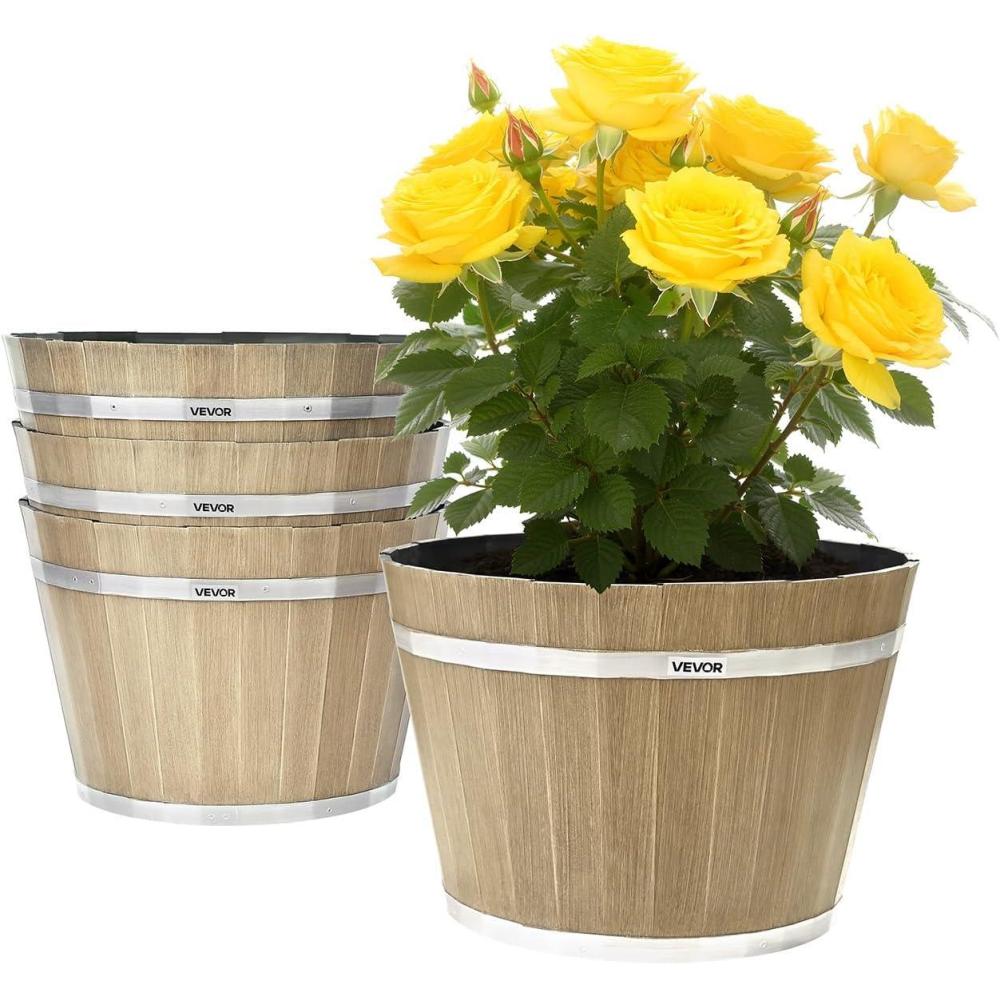 Rustic Barrel-Style Look: Our plant pot features a vintage wood-grain barrel design that brings a natural, rustic charm. Whether placed on your balcony, porch, or living room, it blends beautifully into any decor and adds a warm, green touch