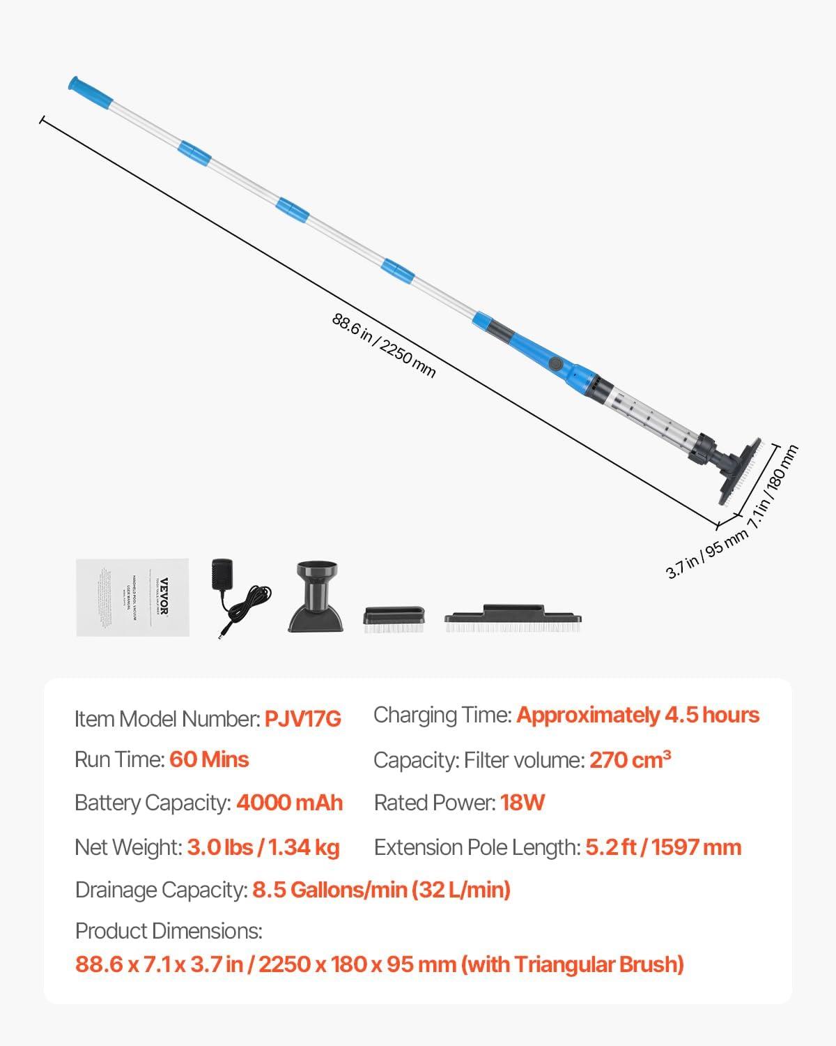 Be the first to review “VEVOR Pool Vacuum, 26 GPM Handheld Cordless Hot Tub Vacuum with Extension Pole, for Deep Cleaning & Strong Suction, Rechargeable Pool Cleaner, Running up to 1Hour, for Above Ground/Inground Pool Spas(18W)”