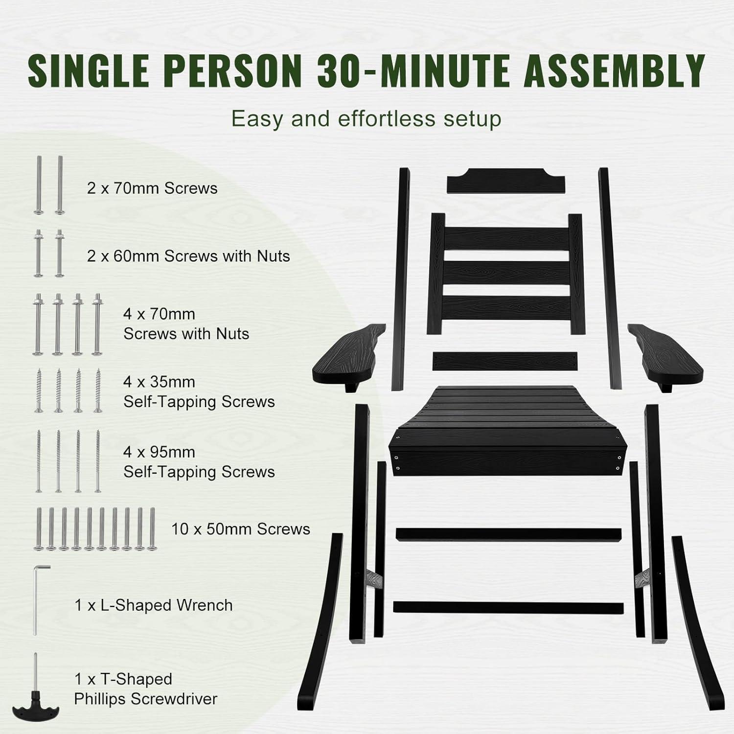 Sturdy and Durable Material: This porch rocker is made from high-density polystyrene (HIPS) material, providing solid construction with enhanced impact resistance and stability. It supports up to 400 lbs, suitable for various body types. The material resists deformation, fading, and weather conditions, ensuring long-lasting use.