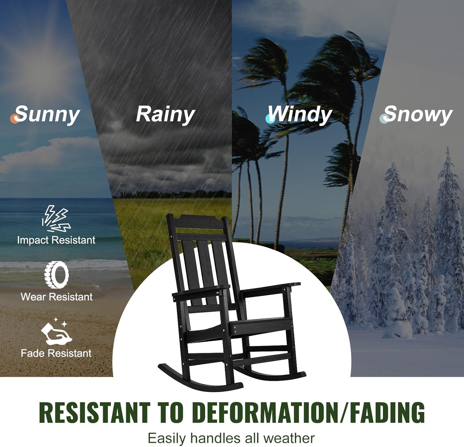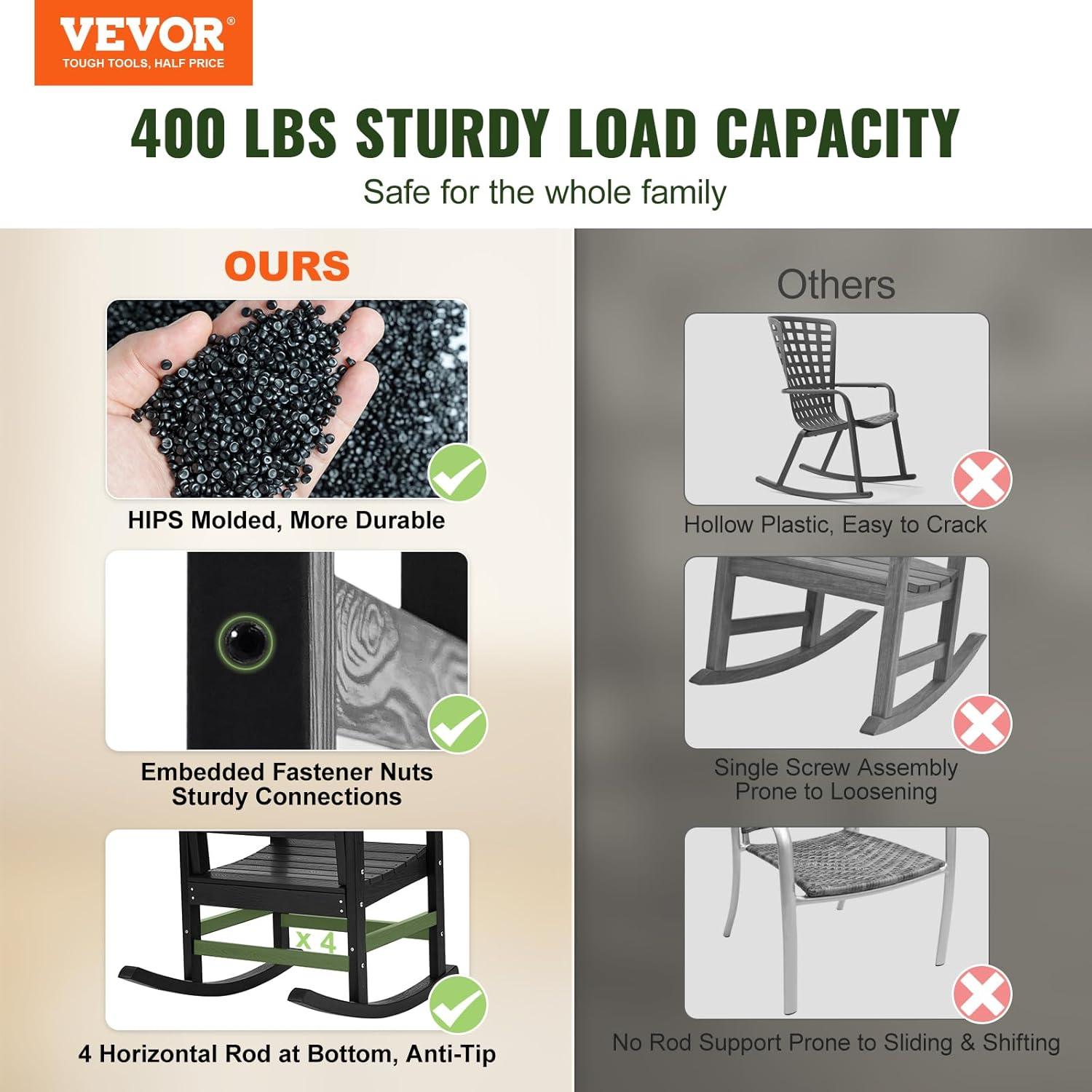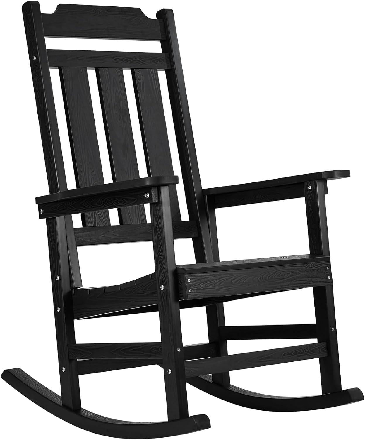 VEVOR Porch Rocker, HIPS Outdoor Rocking Chair, High Back Patio Rocking Chair with Smooth Armrests, Supports up to 400 lbs, for Garden, Balcony, Porch, Black(1PC Rocking Chair)