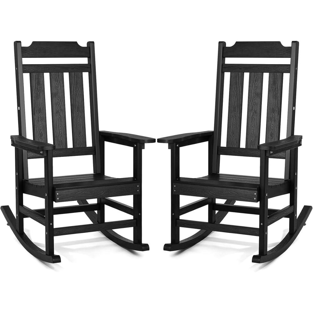 VEVOR Porch Rocker, HIPS Outdoor Rocking Chair, High Back Patio Rocking Chair with Smooth Armrests, Supports up to 400 lbs, for Garden, Balcony, Porch, Black(2PC Rocking Chair)