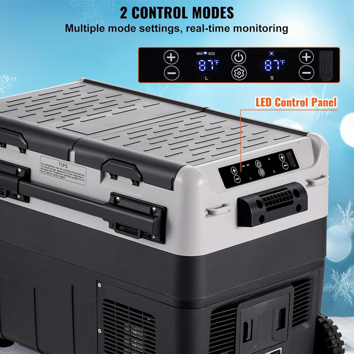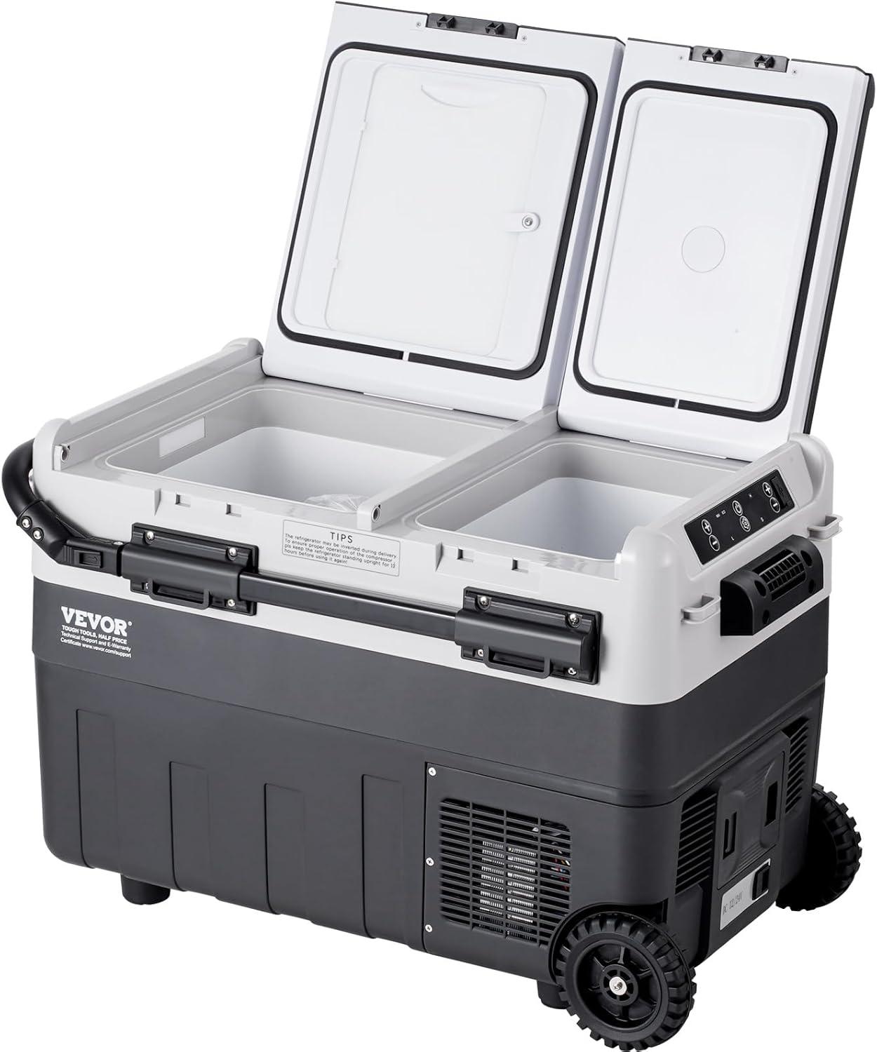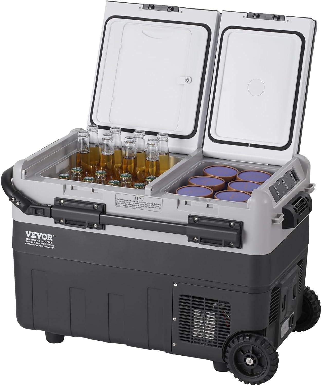 VEVOR Portable Car Refrigerator, 12 Volt Car Refrigerator Fridge, 58 L / 61.5 QT Dual Zone Portable Freezer, -4℉-68℉ Adjustable Temperature, Compressor Cooler for Home, Outdoor, Camping, RV, Car(52.8QT Dual Zone with Handle)