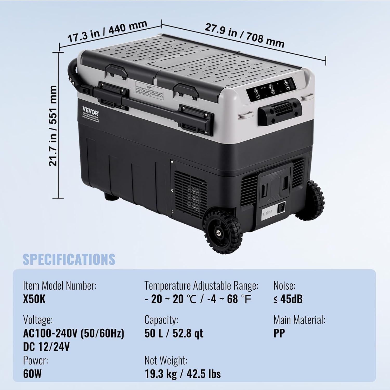Don’t miss out on our limited-time offer: buy VEVOR Portable Car Refrigerator, 12 Volt Car Refrigerator Fridge, 58 L / 61.5 QT Dual Zone Portable Freezer, -4℉-68℉ Adjustable Temperature, Compressor Cooler for Home, Outdoor, Camping, RV, Car(52.8QT Dual Zone with Handle), get a free {accessory}!