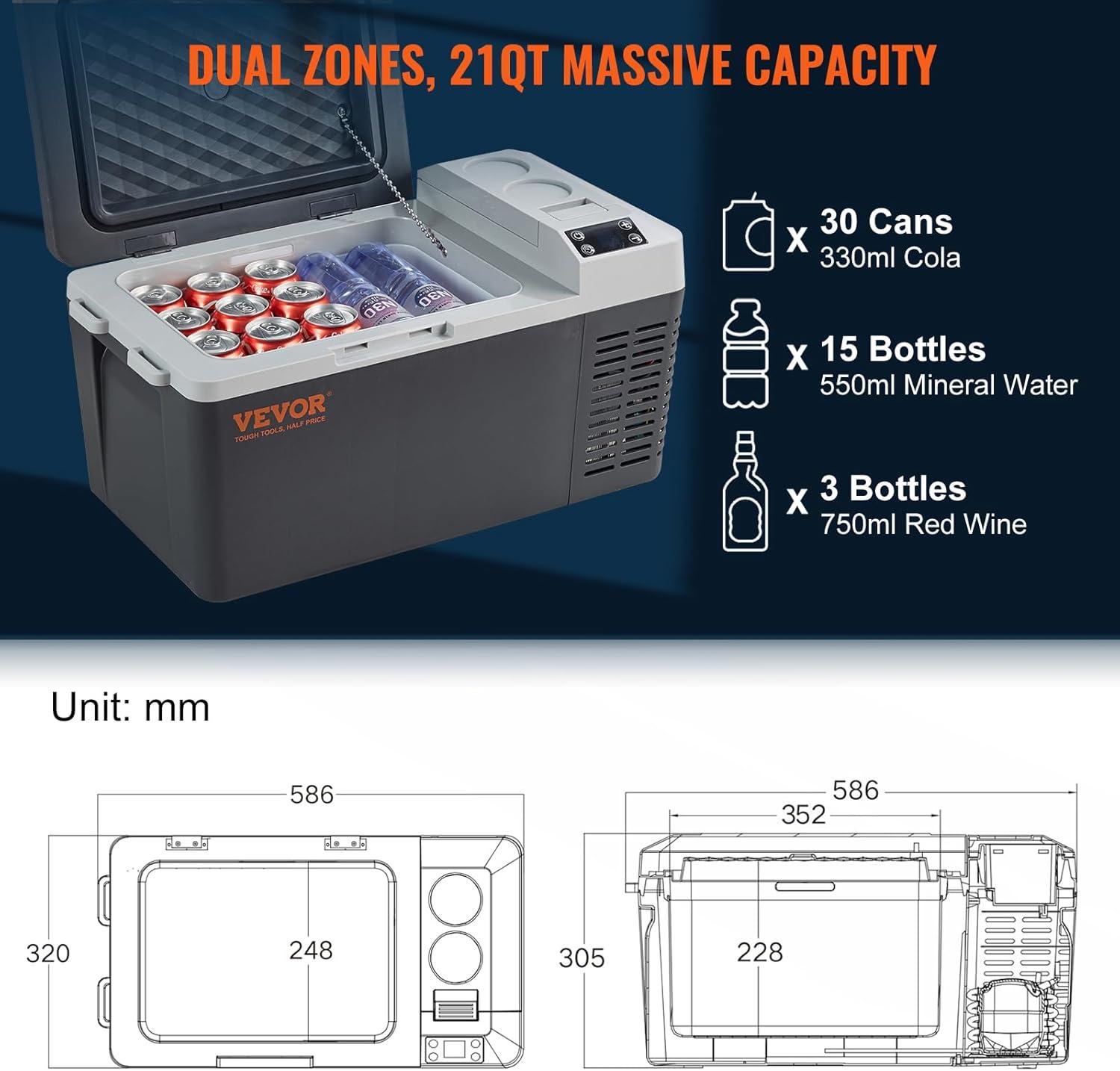 Don’t break the bank! Get the VEVOR Portable Car Refrigerator, 12 Volt Car Refrigerator Fridge, 58 L / 61.5 QT Dual Zone Portable Freezer, -4℉-68℉ Adjustable Temperature, Compressor Cooler for Home, Outdoor, Camping, RV, Car(21QT) you want at a price you can afford during our markdown sale.
