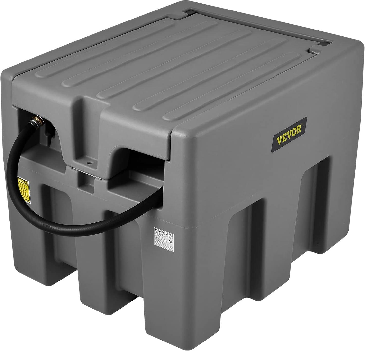 VEVOR Portable Diesel Tank, 58 Gallon Capacity & 10 GPM Flow Rate, Fuel Tank with 12V Electric Transfer Pump and 13.1ft Rubber Hose, PE Diesel Transfer Tank for Easy Fuel Transportation, Red(Grey)