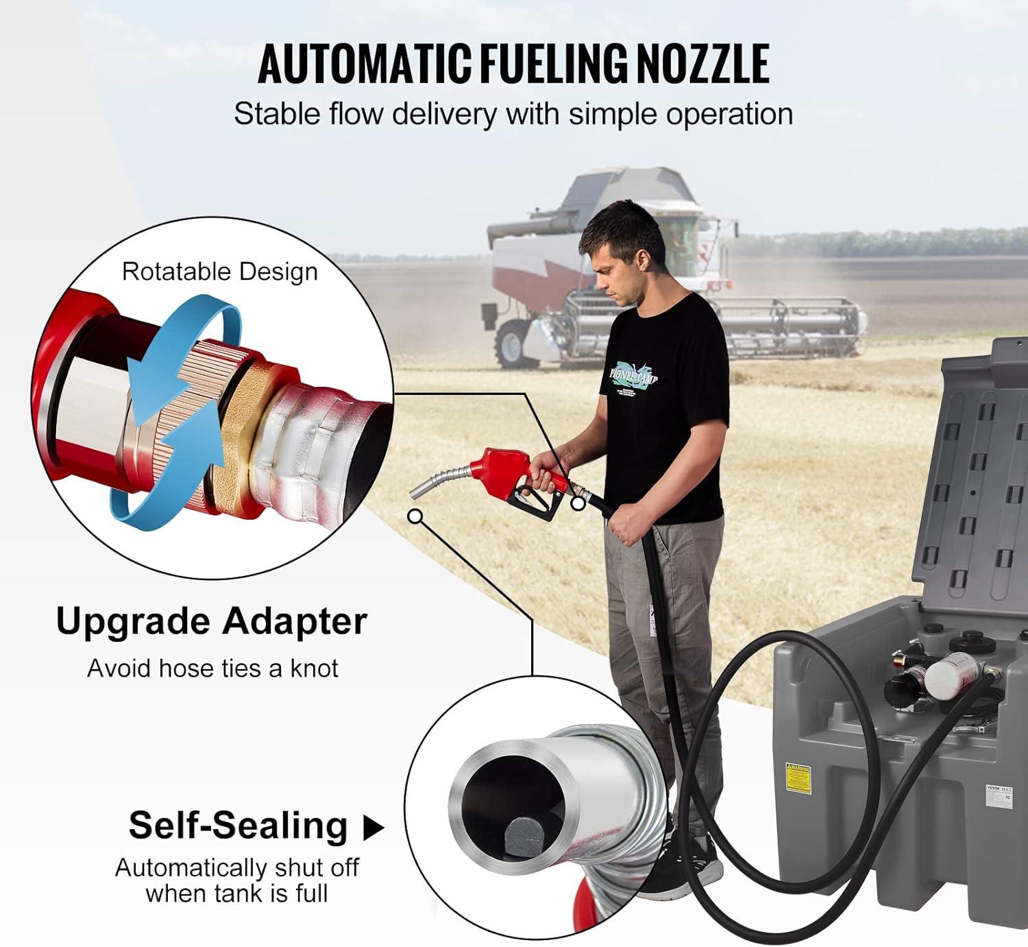 Automatic Fueling Nozzle: Are you tired of overfilling your tank? Well, this fuel nozzle will shut off automatically when the tank is full, which efficiently avoids oil waste and spillage. In addition, the rotatable adapter has been improved to help the hose get of knotting. Made of premium aluminum alloy and PVC material, our nozzle has a smooth surface finish and a long service time.