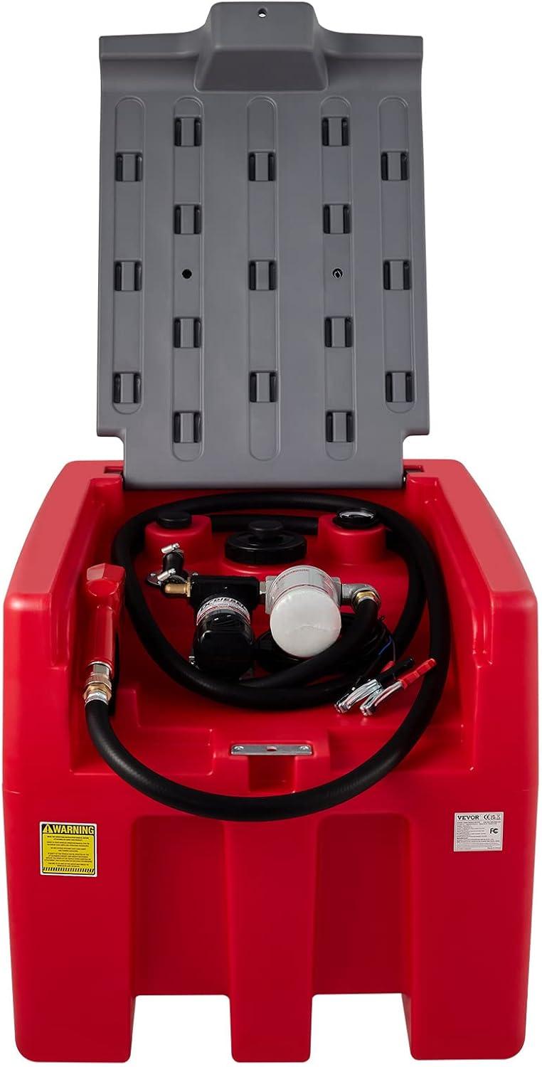58 Gallon Efficient Refueling: Flow Rate: 10.6 GPM; Output Power: 140W. 12V transfer pump provides strong power to deliver fuel from the tank to your vehicles in high efficiency. We adopt a mechanical fuel gauge aimed to monitor the capacity of diesel in time, reminding you to fill up in time. Safety fill capacity is 52 Gal. Maximum fill capacity is 58 Gal.