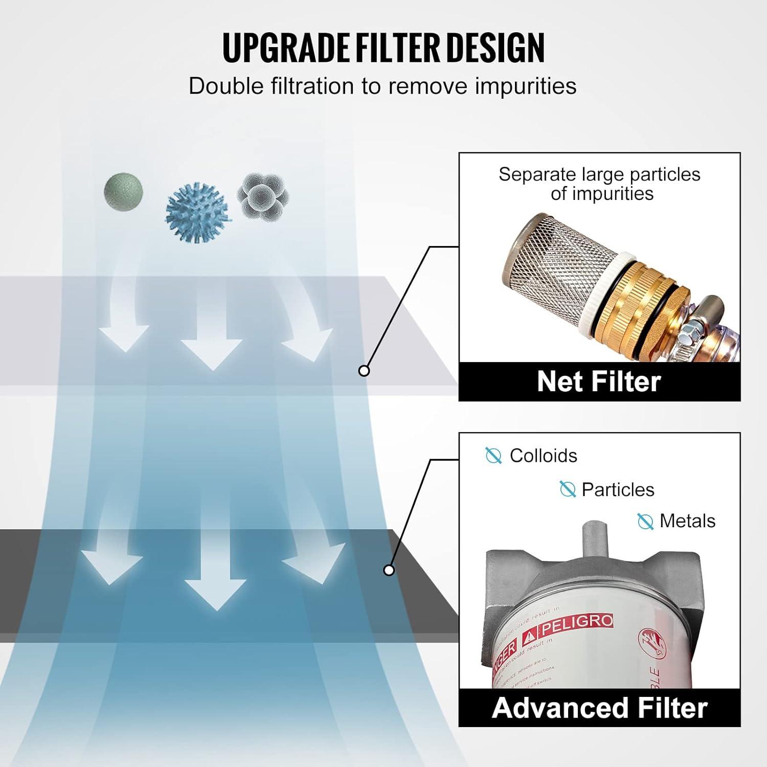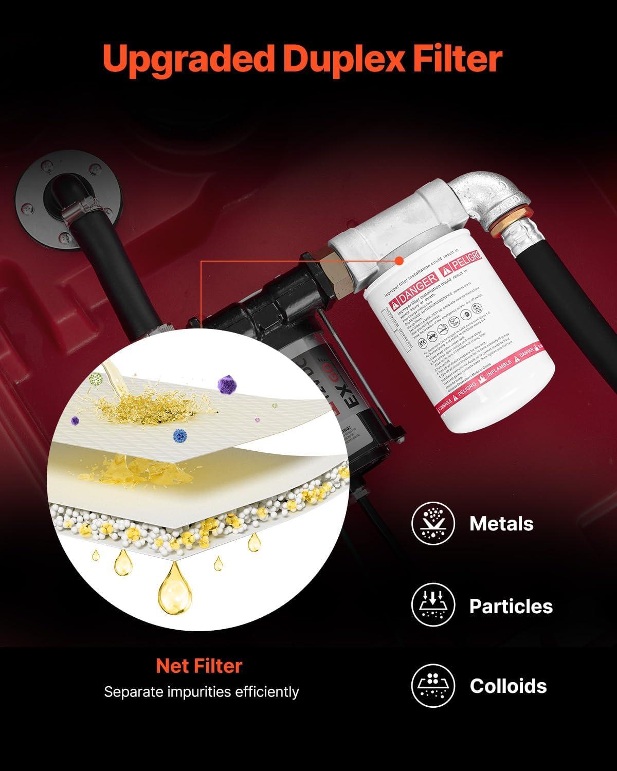 Upgraded Filter Design: Compared with others products, Our fuel transfer tank is equipped with a duplex filter to offer purer diesel. The front-end filter of the inner tank can separate large particles of impurities, and the premium outer filter is designed to filtrate small impurities such as metal, colloids, tiny particles, etc.