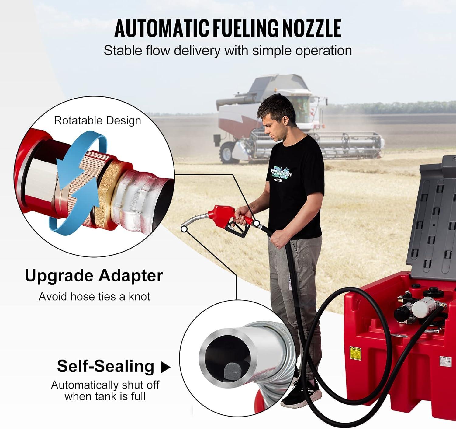 Automatic Fueling Nozzle: Are you tired of overfilling your tank? Well, this fuel nozzle will shut off automatically when the tank is full, which efficiently avoids oil waste and spillage. In addition, the rotatable adapter has been improved to help the hose get of knotting. Made of premium aluminum alloy and PVC material, our nozzle has a smooth surface finish and a long service time.