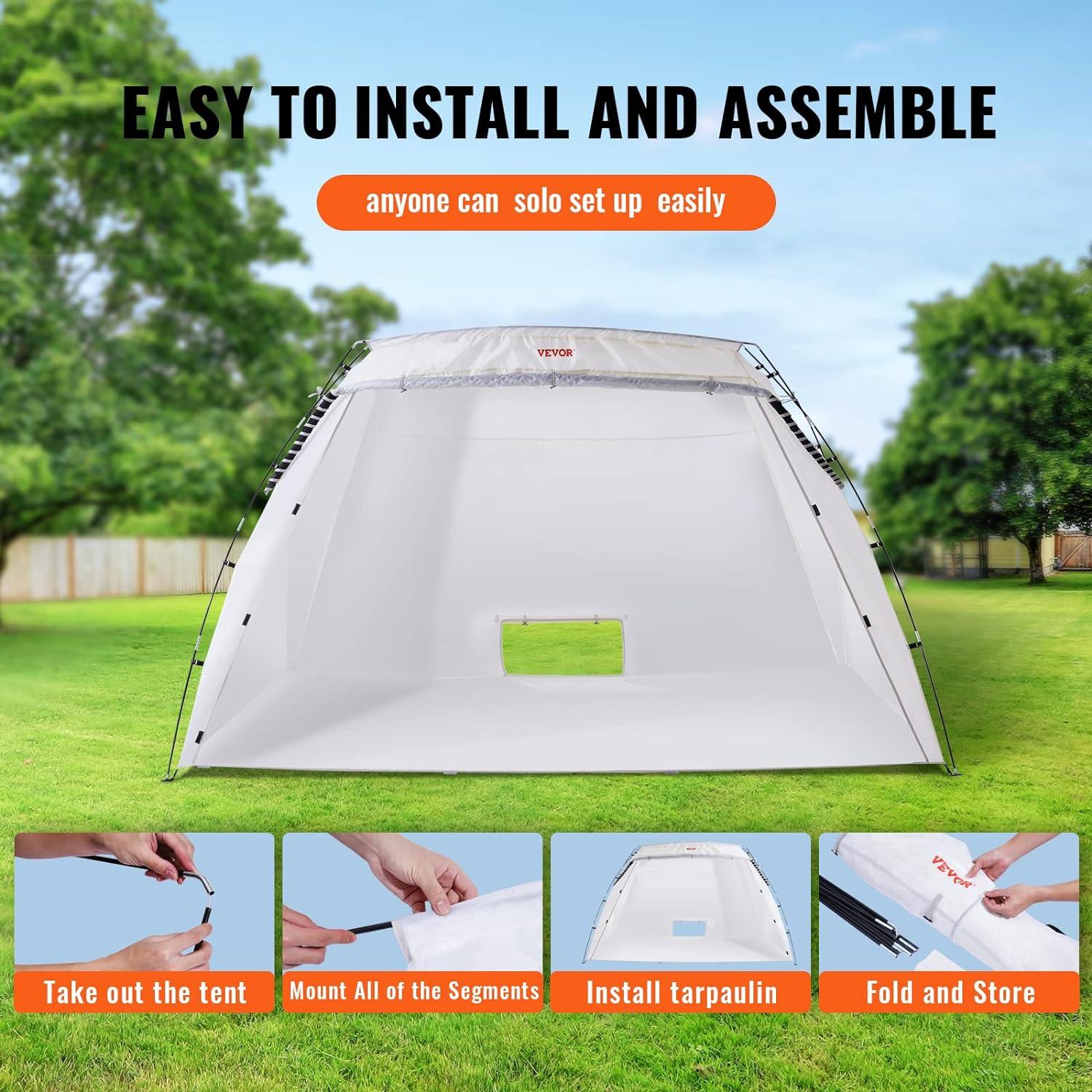 Spray Paint Shelter: VEVOR‘s portable paint booth tent offers a confined area for users to refine furniture and crafts with a paint sprayer, airbrush or aerosol cans. Keeps dust and dirt from drying paint. Get you rid of the trouble of cleaning up the spills when you finish jobs.