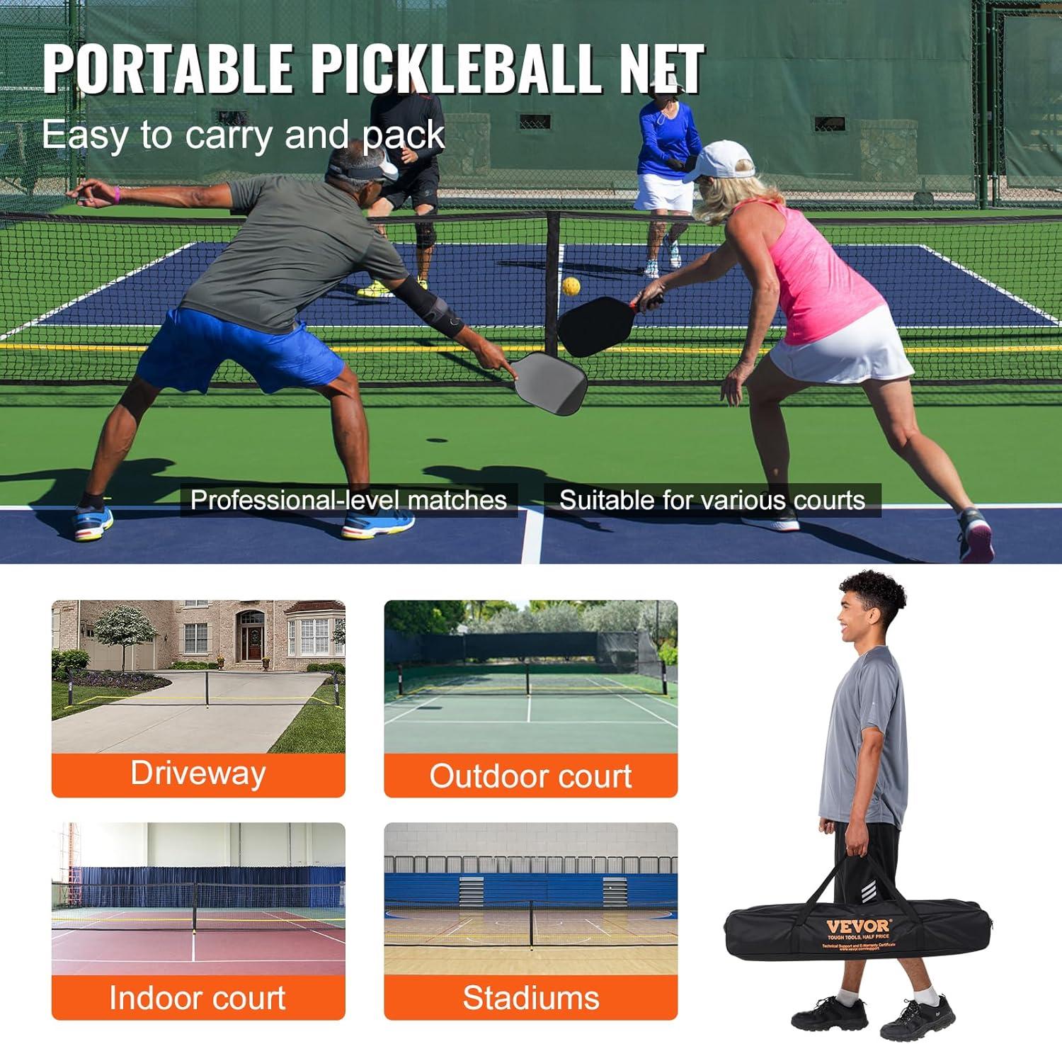 VEVOR Portable Pickleball Net System, 22FT Regulation Size Net(Pickleball Net Set with Paddles)