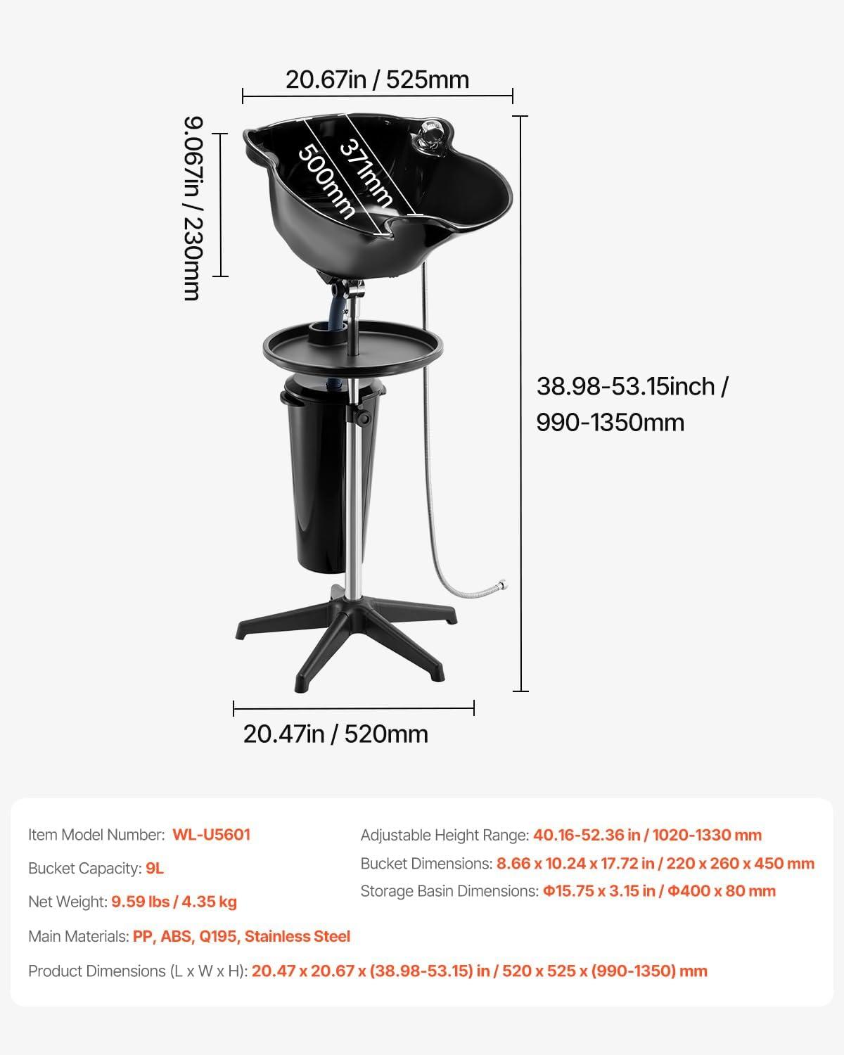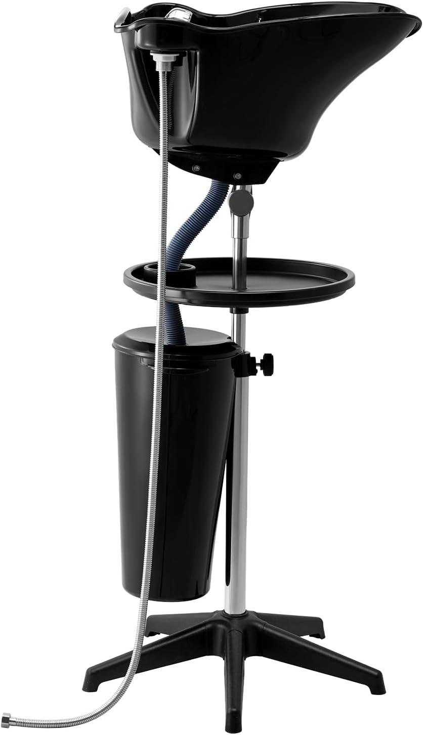 VEVOR Portable Shampoo Bowl, Shampoo Sink for Washing Hair with Electric Pump, Includes 2 Buckets 2 Showerheads, Drain Hose, Height and Angle Adjustable Portable Wash Bowl for Home Salon Use, Black(Hair sink w/ 1 bucket&storage basin(Upgraded version))