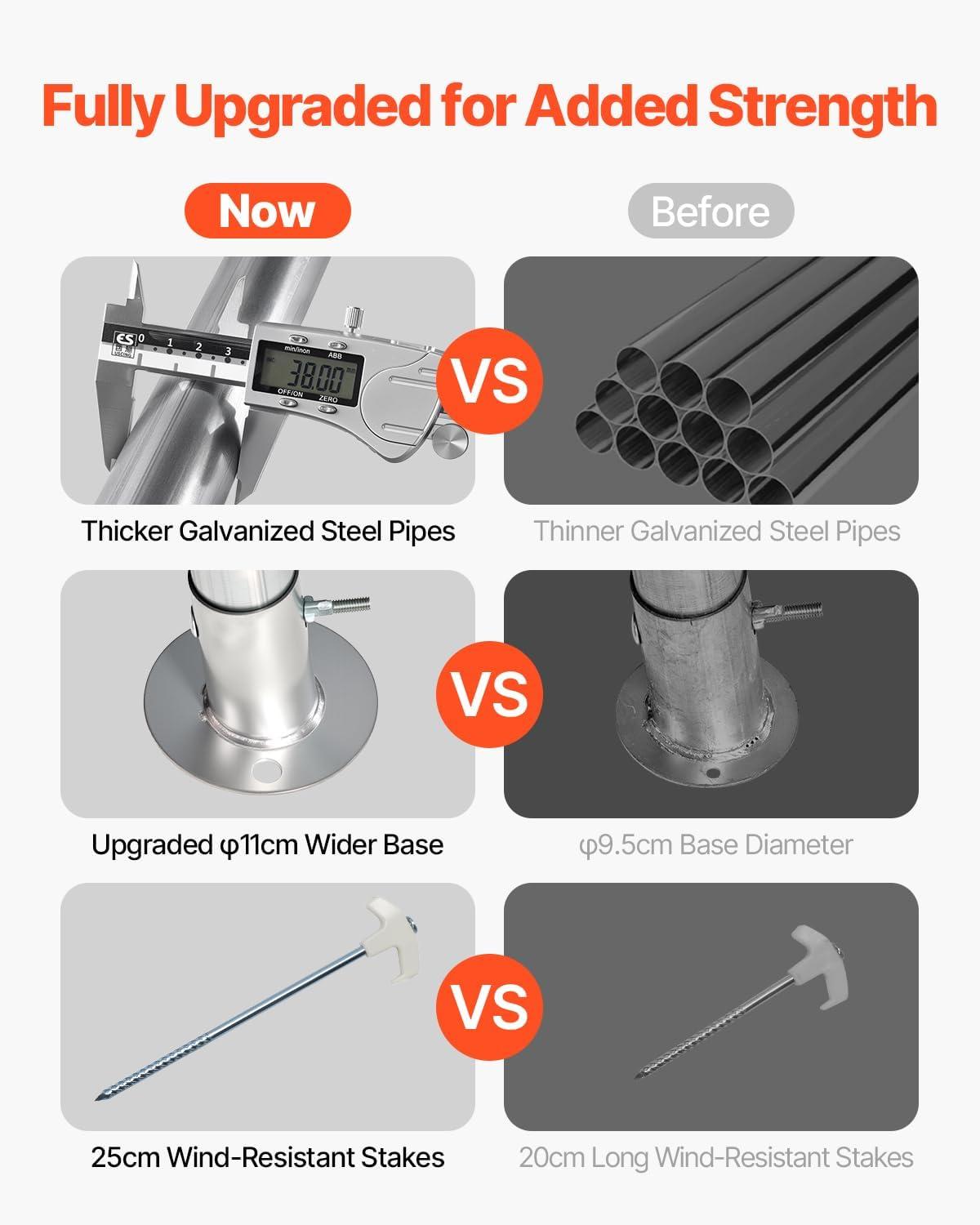 Tough Steel Metal Frame: This 10 x 10 x 8.5 ft portable storage shed, with 695.7 ft³ interior volume, is built like a fortress with galvanized steel pipe. With a thickness of 38mm and a 0.8mm wall thickness, it can keep the shed/shelter safe!