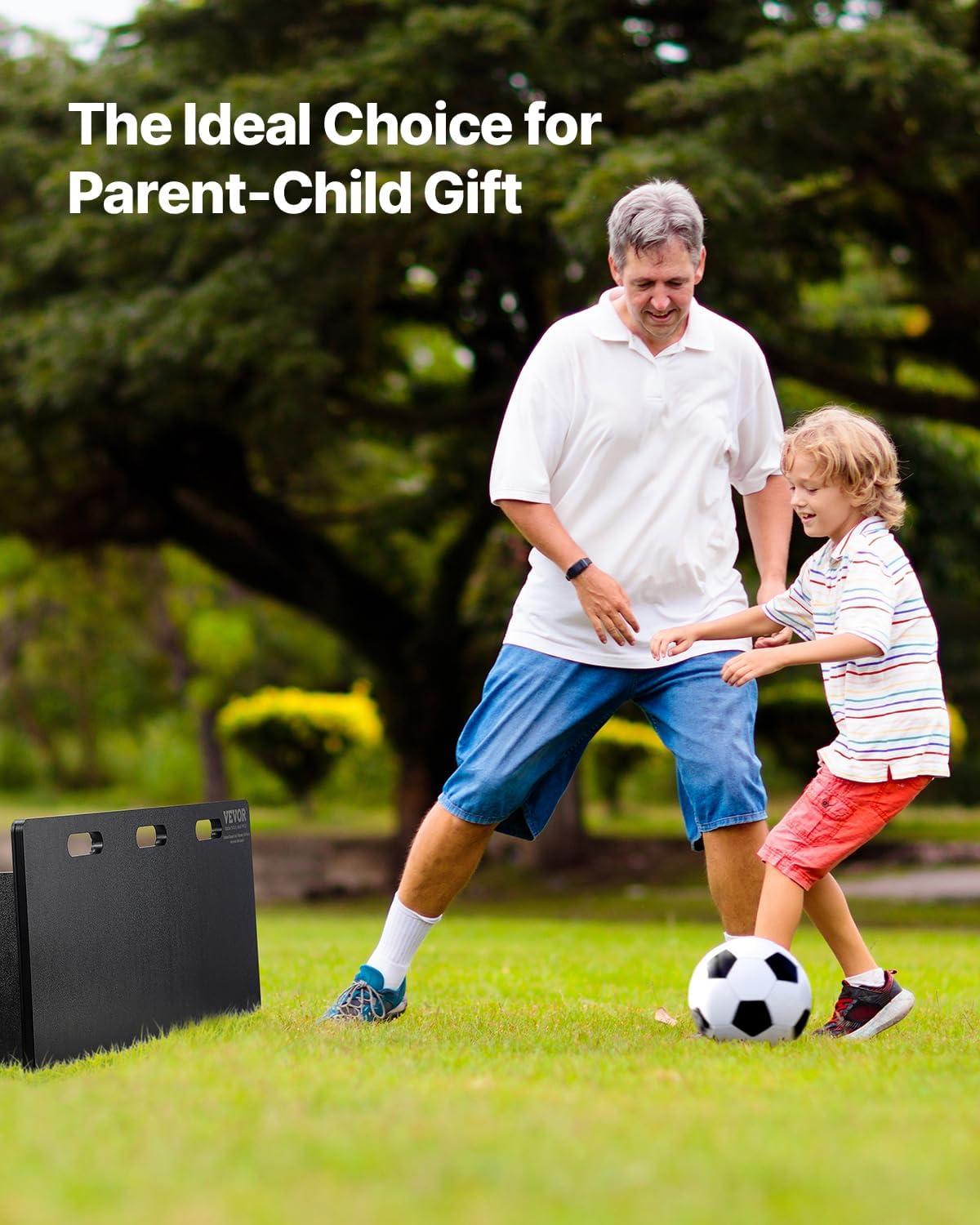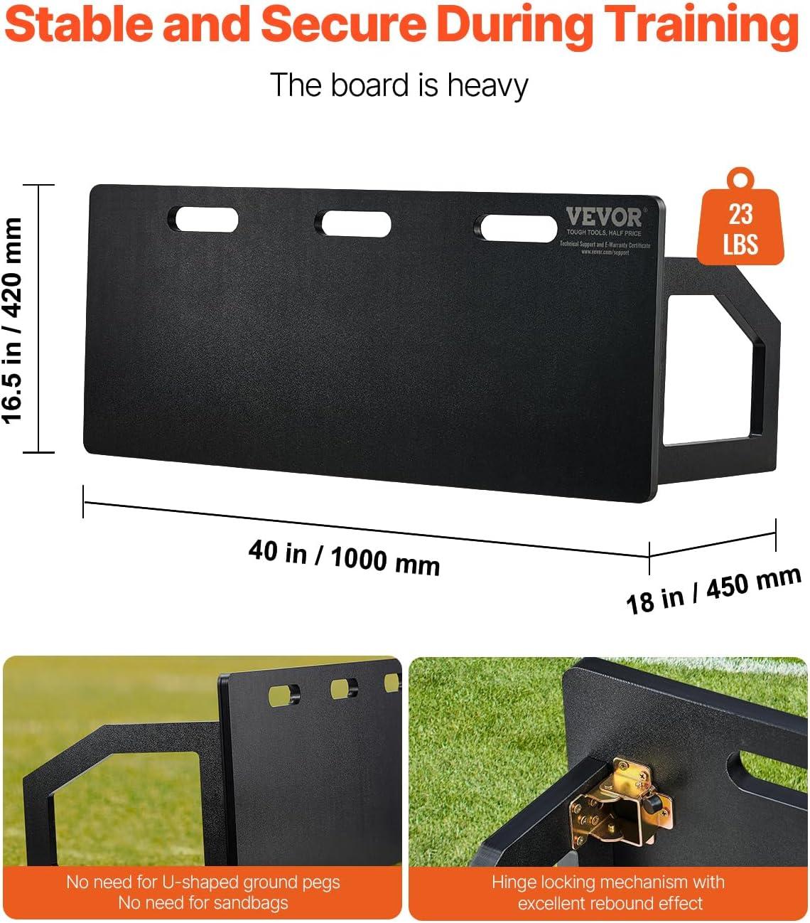 Stable Practice Board: This soccer rebounder board enhances your passing and shooting precision. With its spacious 40 x 16 in size, it accommodates both adults and children. Weighing 23 lbs, it offers enough durability to stay stable without requiring ground pegs or sandbags.