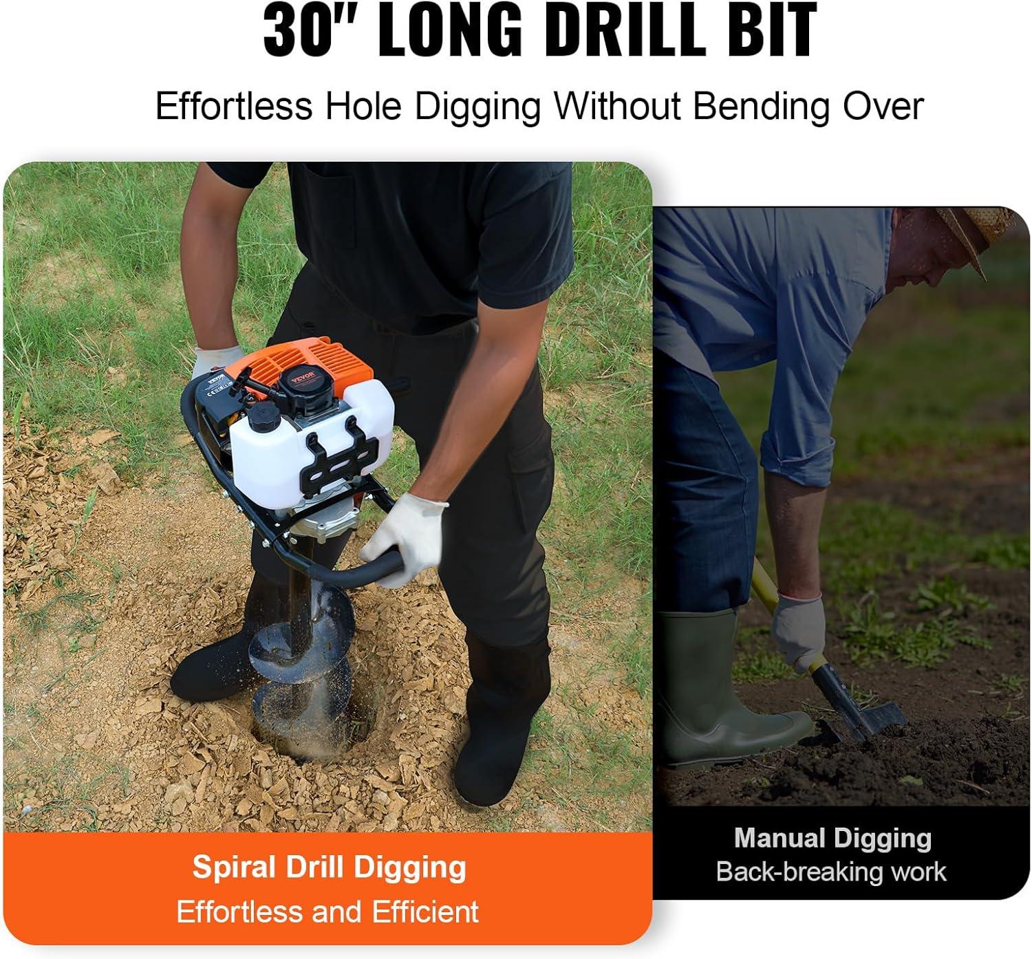 imageVEVOR Post Hole Digger Gas Powered 52CC 1450W Earth Auger 8 Drill Bit ampamp 1 Ext Rod Farm Garden Post Hole Digger EPA Certified52CC8