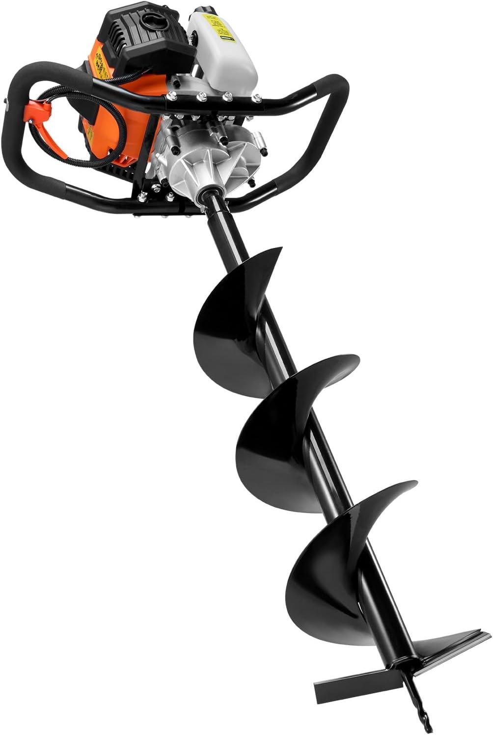 VEVOR Post Hole Digger, Gas Powered 52CC 1450W Earth Auger, 8′ Drill Bit & 1 Ext Rod, Farm/ Garden Post Hole Digger, EPA Certified(52CC+8″)