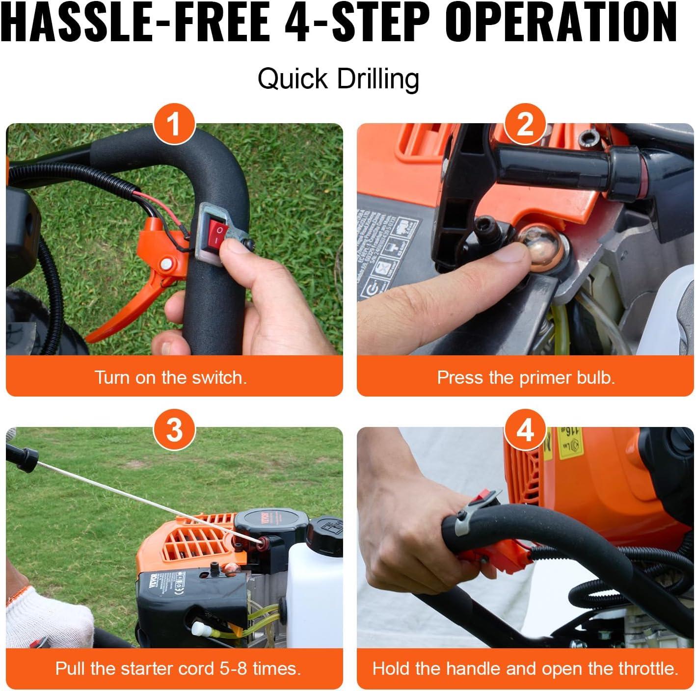 imageVEVOR Post Hole Digger Gas Powered 52CC 1450W Earth Auger 8 Drill Bit ampamp 1 Ext Rod Farm Garden Post Hole Digger EPA Certified63CC8