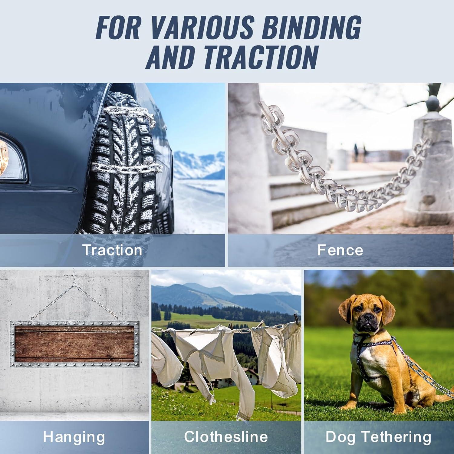 Perfect for Outdoor Adventures: This zinc plated coil chain doesn't just work indoors—it's splash-proof and ready for the outdoors. From pulling logs to hanging lights, securing clothes, or even keeping your dog safe, it's versatile enough for whatever life throws your way.