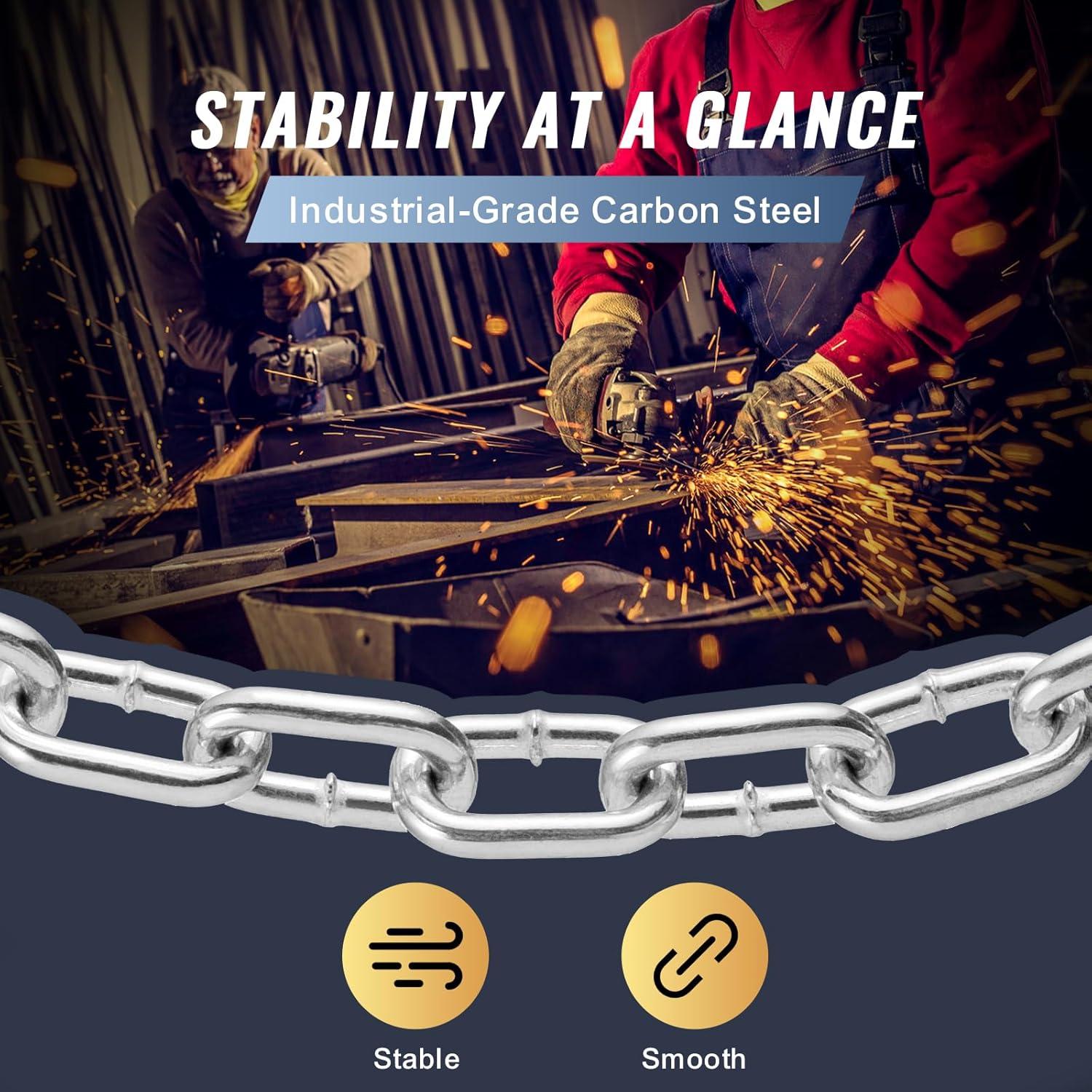 Quick and Easy to Use: With dual quick links, you can secure this carbon steel coil chain in a snap. It's all about making your life easier—lock it in place with just a press and go about your day. These quick links are versatile for more scenarios, ensuring stability and security across different environments.