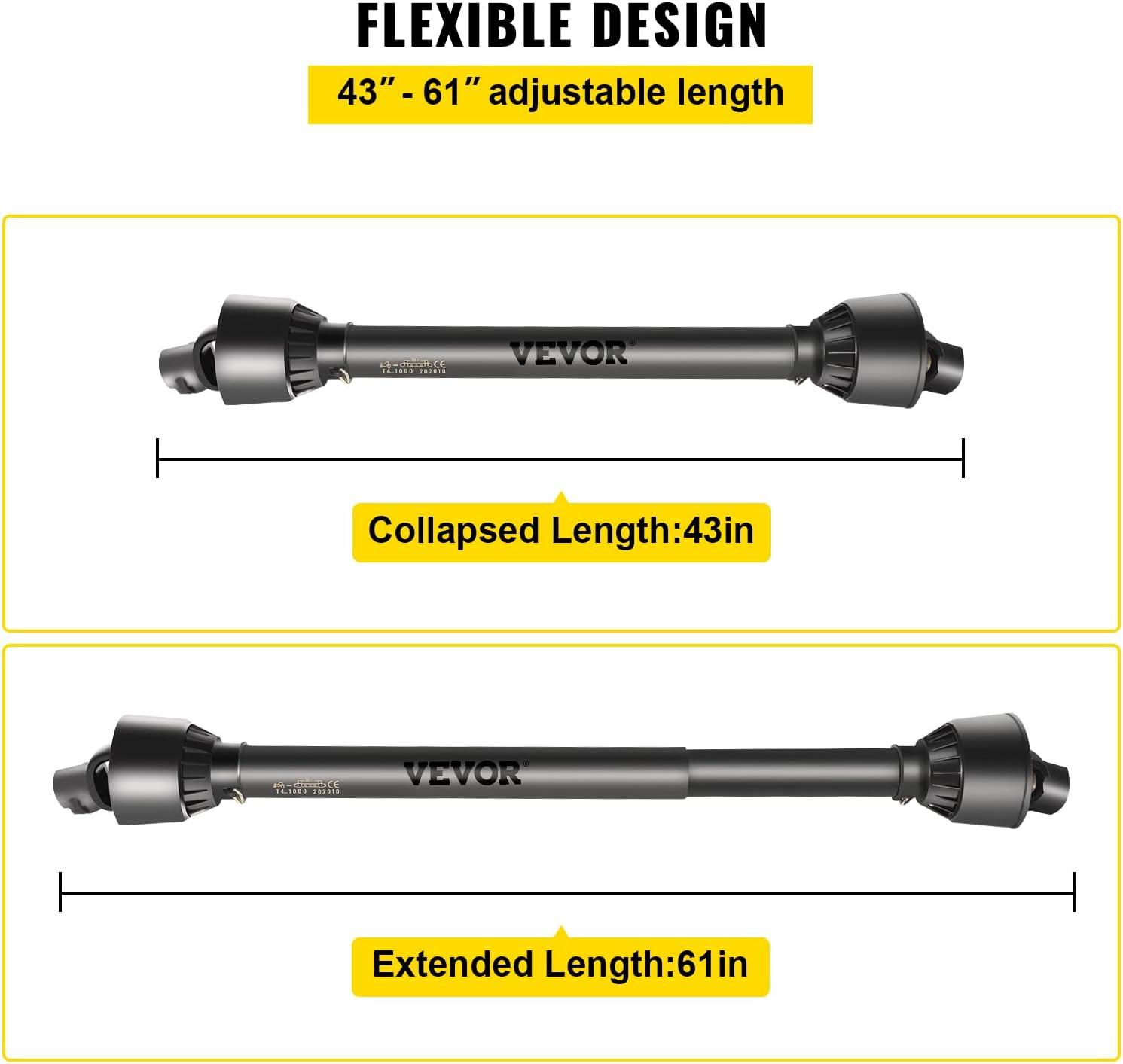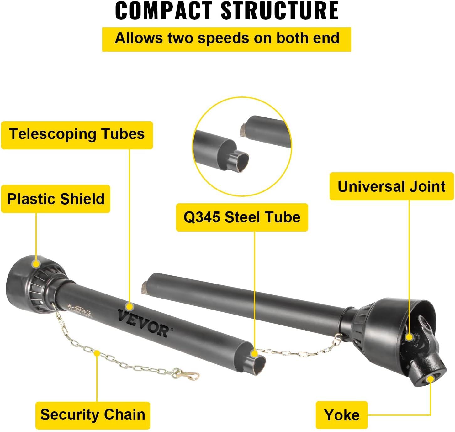 Easy Assembly&Safer Use: As a high-efficient power transmission tool, our PTO extender shaft can be easily assembled for effortless direct replacement. The security chain and sturdy shield eliminate potential dangers in the transmission process.