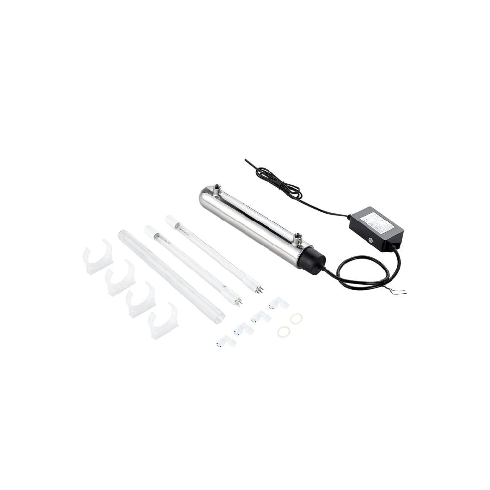 Complete Accessories: 1 x Stainless Steel Main Body Tube, 2 x Light Tubes (1 required, 1 extra included), 1 x Quartz Glass Sleeve, 1 x Power Ballast, 4 x Mounting Brackets (2 required, 2 extra included), 2 x Sealing Rings (1 required, 1 extra included), 4 x Quick Connectors, 1 x Tape. If any parts are missing or damaged, please contact us for free compensation.